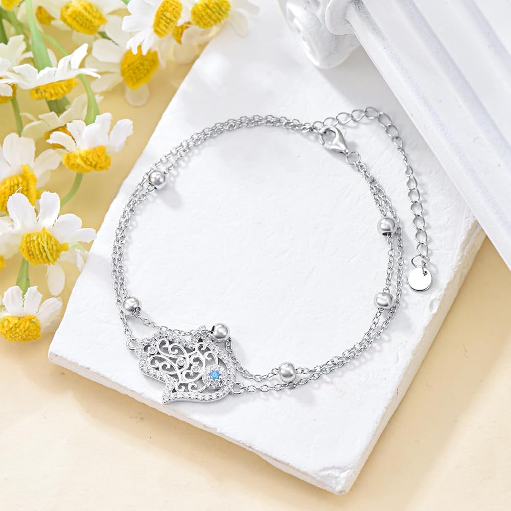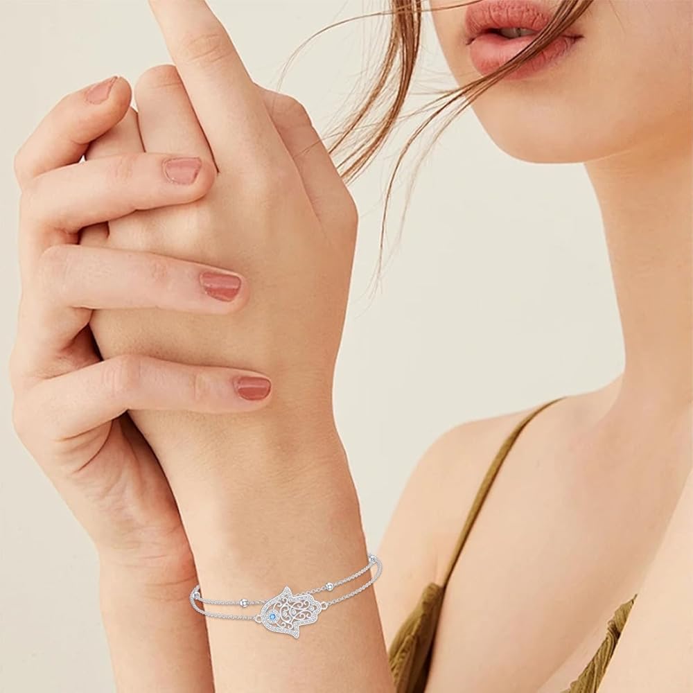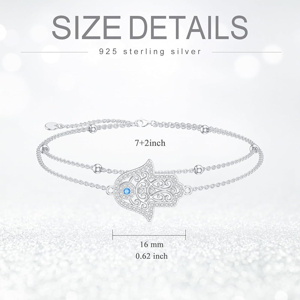 【 Design】The silver double layer bracelet designed with Evil Eyes and Hamsa Hand,the evil eye is a “Luck Charm” and protects people against misfortune. Hand of Fatima is a mysterious talisman, driving away evil.A perfect protection jewelry gift for your loved one or yourself.