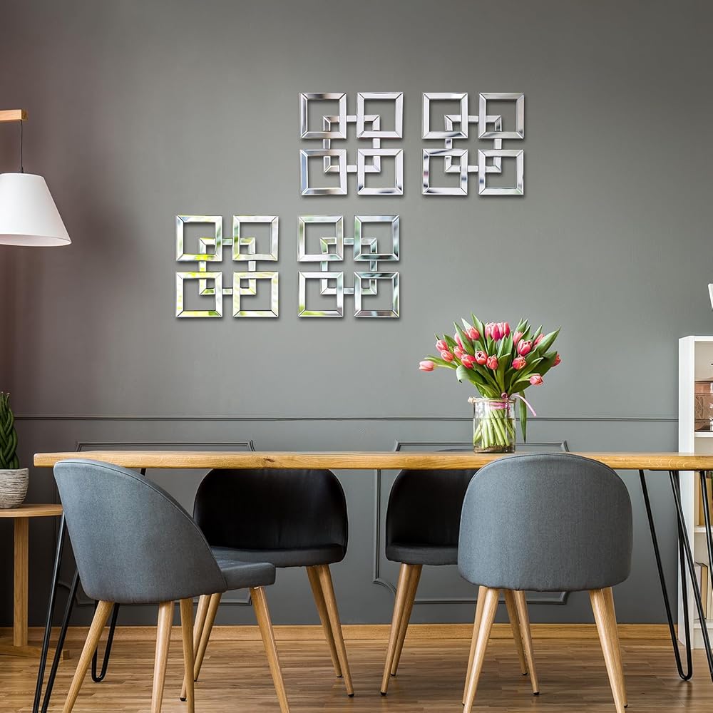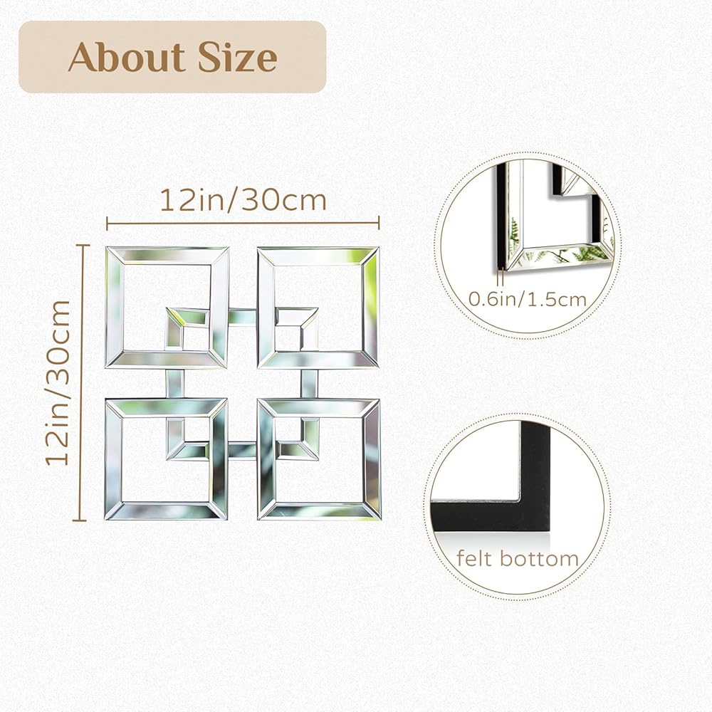 Measuring 12inch×12inch×0.6inch, these large mirrors craft come in a pair of mirrors for wall, including two small ones. The kitchen art wall decor mirror reflects light and adds depth, creating an illusion of a big space. The design of this wall panels for interior wall decor is versatile and can fit seamlessly with any interior design style.
