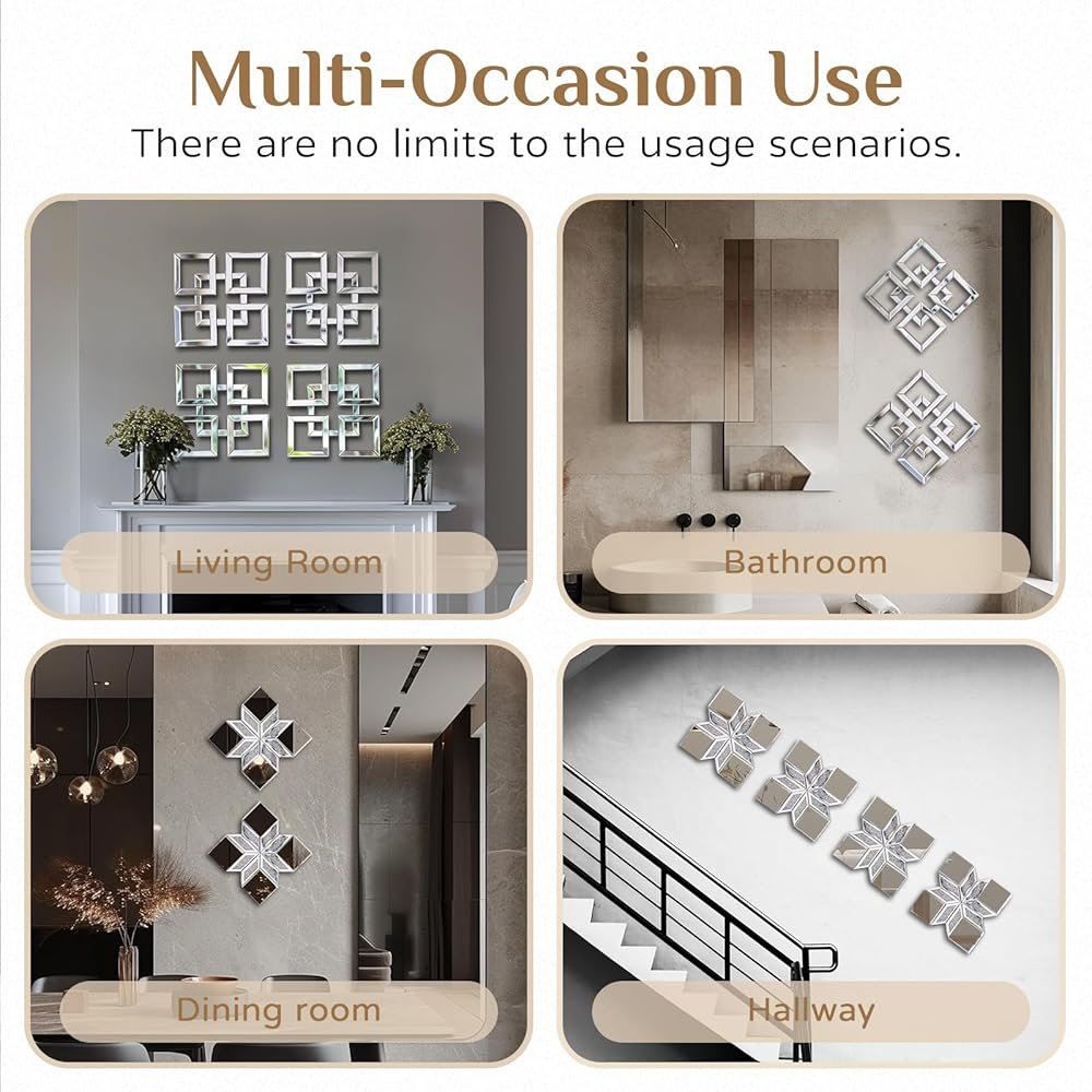 Introducing the Mirrored Wall Decor for Bedroom by Walasis - the beautiful accents to your home decoration! With a sleek and glam ideas, this set of gym mirrors for home gym wall will add a touch of modern to any room in your farm house. Crafted from high-quality silver glass, these crystals plaques are perfect for enhancing the brightness and visual appeal of your master livingroom, dorm, restroom, bath, staircase, cathedral, salon, bedrooms, or any other space.