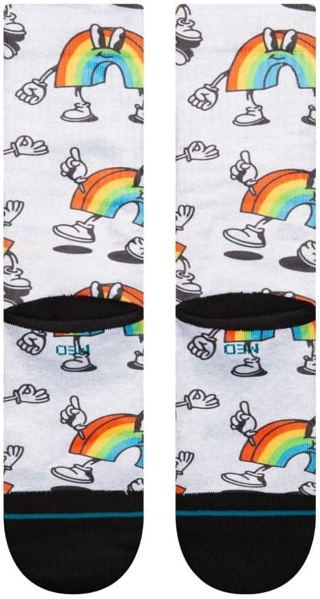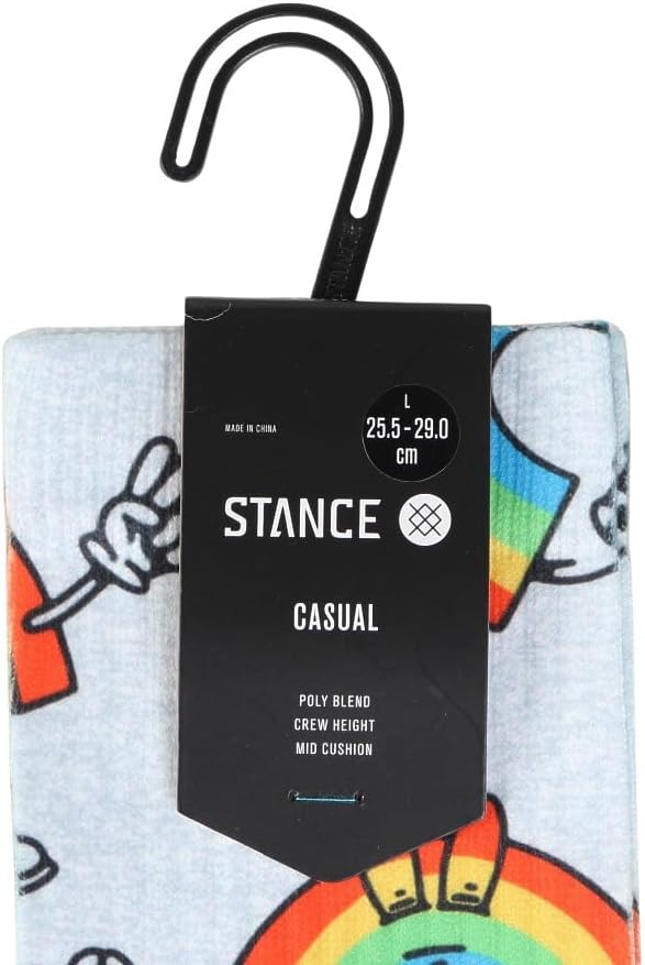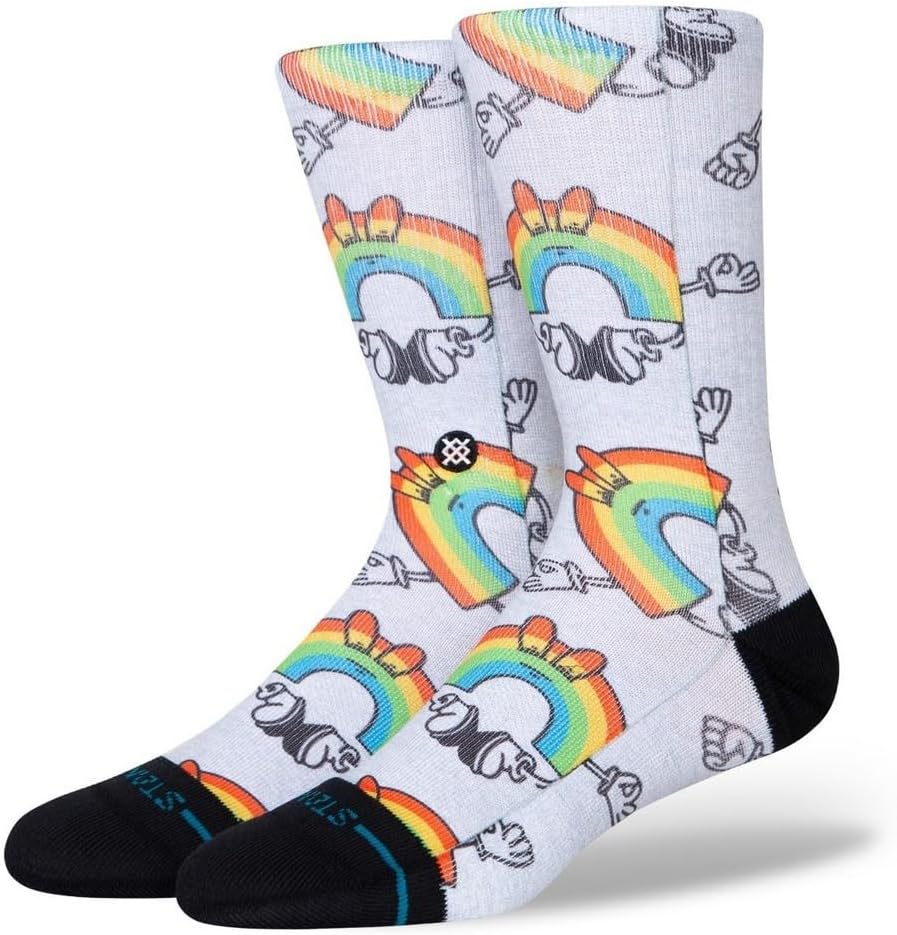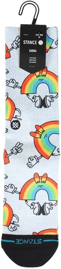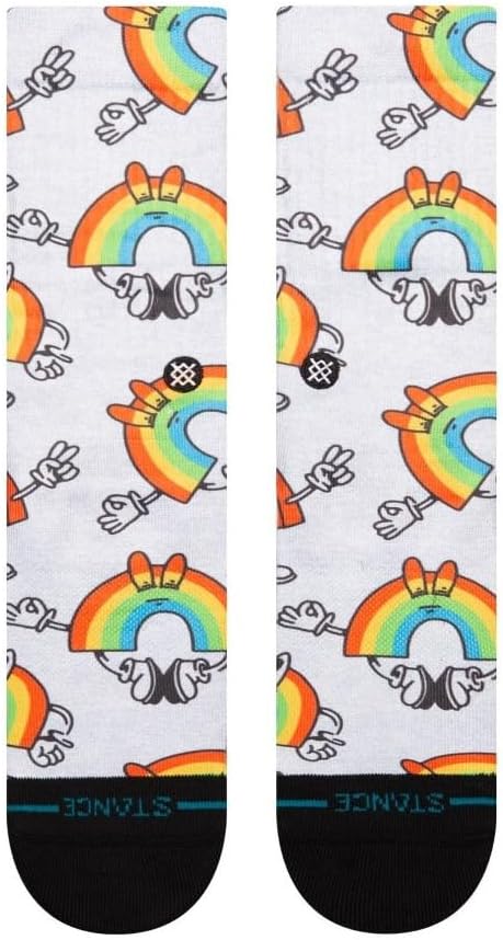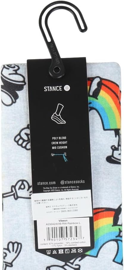 VIBRANT DESIGN: Elevate your sock game with the Stance Vibeon socks, boasting a striking design that adds a vibrant pop of color to your look. Whether peeking out from sneakers or paired with sandals, these polyester socks are sure to make a statement with their bold rainbow hues and eye-catching pattern. Perfect for adding a touch of personality to any outfit, they're a fun and playful accessory that exudes confidence and style.