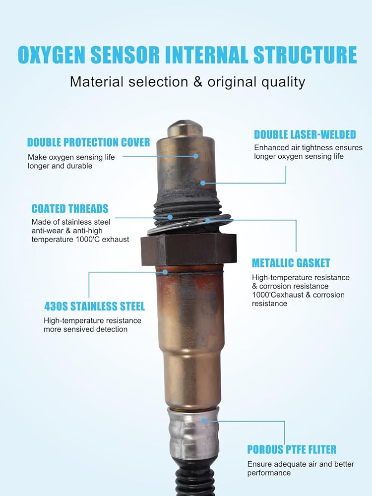 【أداء متميز】يوفر الجسم المزدوج المصنوع من الفولاذ المقاوم للصدأ الملحوم بالليزر مع تقنية متقدمة قياسًا عالي الدقة للضغط الجزئي للأكسجين، والتحكم الدقيق في نسبة الهواء إلى الوقود وأداء المحرك الأمثل.
