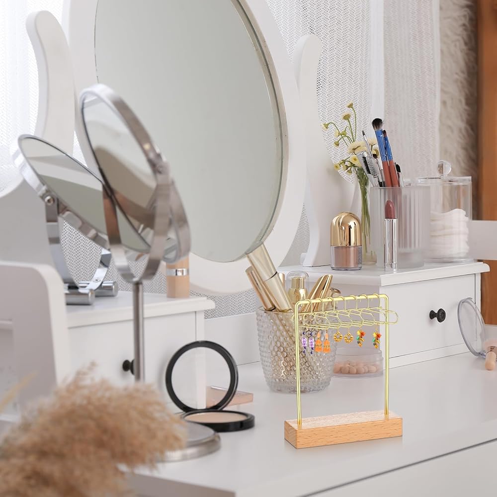 • Material composition: get this earring organizer made from iron, lending it sturdy; Its elegant gold color adds to its elegance, thus making it an exquisite addition to your decor