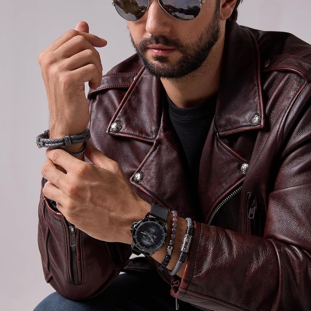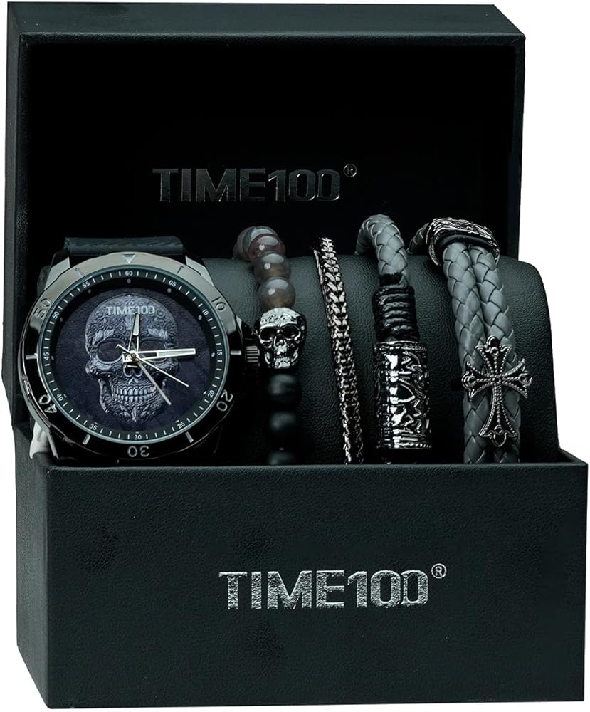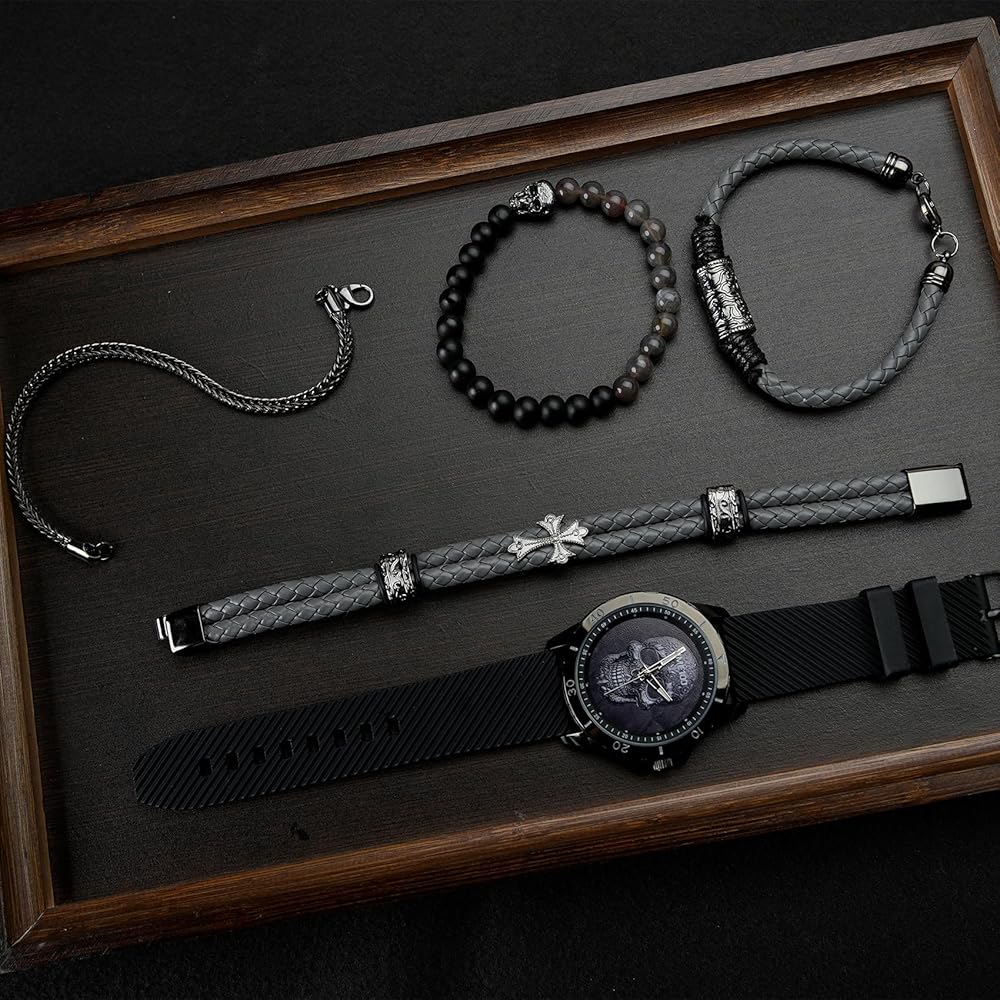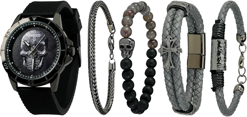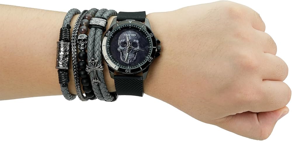 مشاهدة جمجمة الرجال مع مجموعة سوار قابلة للتكديس ، فرقة السيليكون