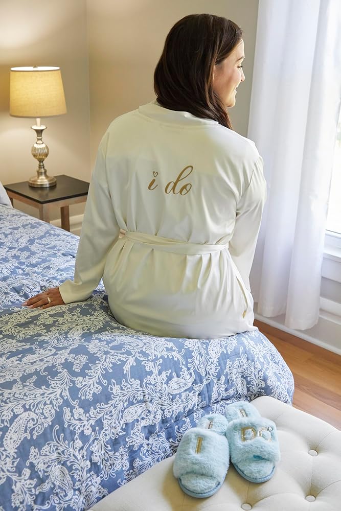 TIME FOR CELEBRATION: Where comfort meets bridal charm, ensuring you feel as beautiful as you look on your special day. Elevate your pre-wedding moments with this comfortable and luxe soft 2-Piece Pajama Set during the wedding or bachelorette/bachelor night out preparations. Start off your day by lounging in this collared button-up, ruffled short-sleeve top with an “I Do” embroidered pocket and a tie waist short with the cutest ruffles.