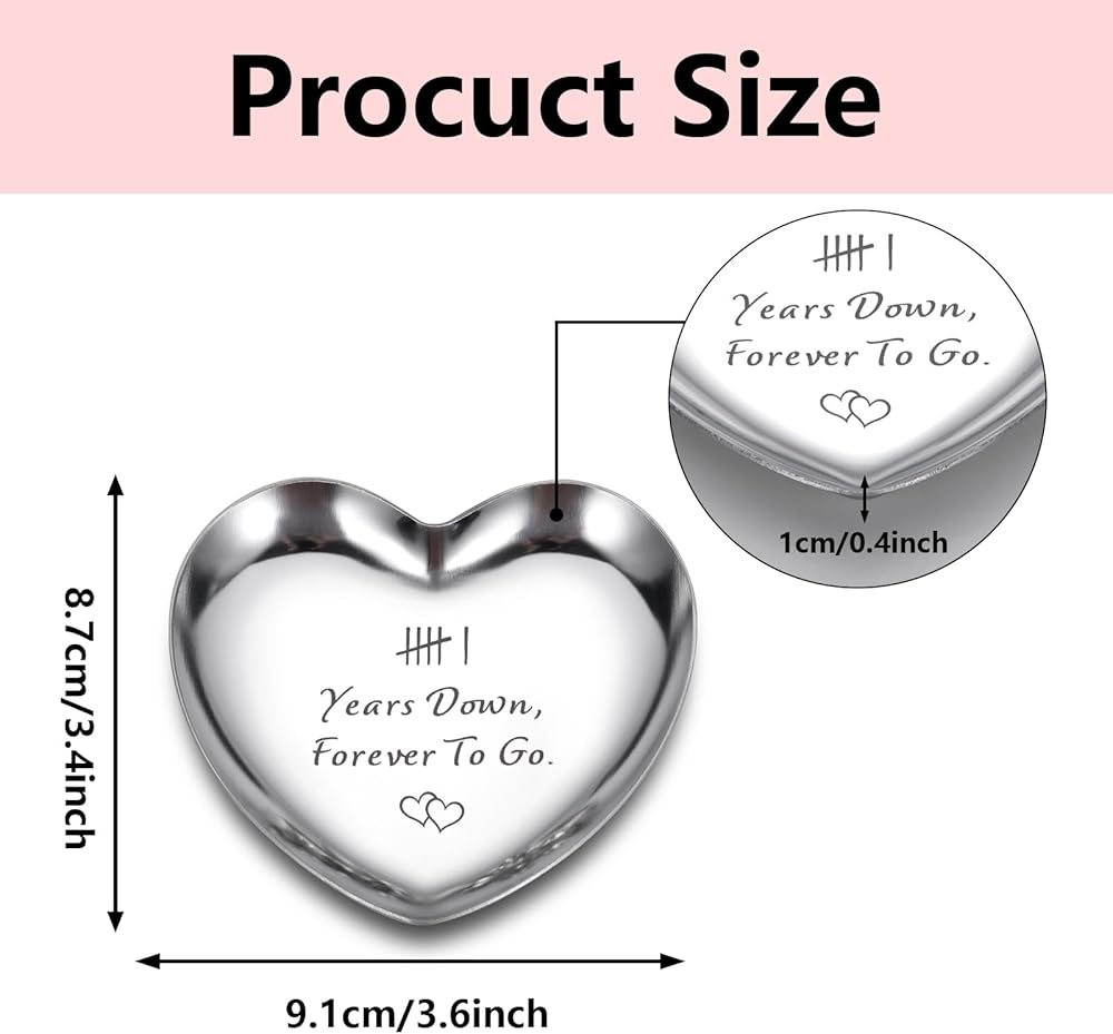 • Iron 6th Anniversary Gifts for Wife/Husband: This ring holder dish jewelry tray as a 6 year anniversary gift is cute and useful. You'll never lose your wedding ring again! The marking of 6 (卌I) and the two hearts make a great personalized 6th anniversary gifts for couple. Iron 6th anniversary gifts, 6th anniversary gifts for him, 6th anniversary gifts for her, iron gifts for 6th anniversary for him, 6th anniversary iron gifts, 6th wedding anniversary gifts for her, iron gifts for him