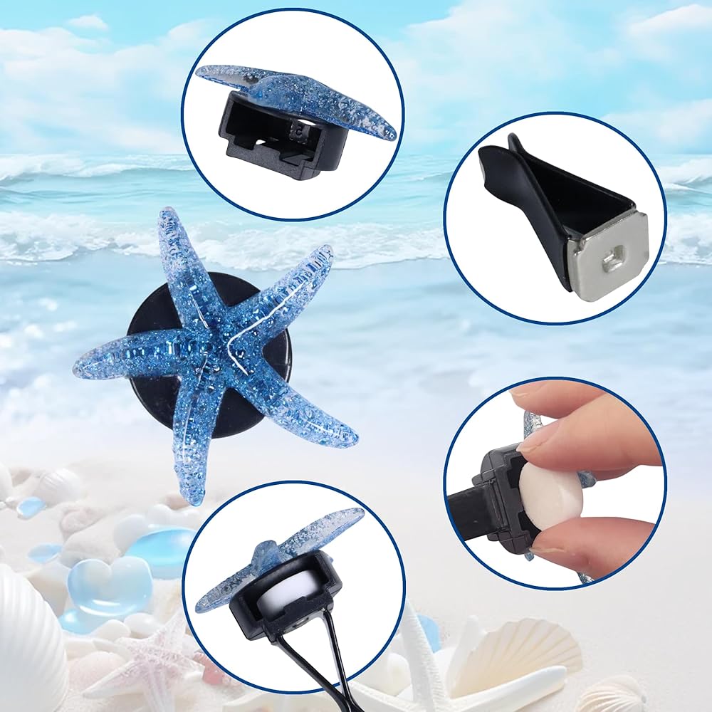 • Complete Set: Includes 4 Shell and 4 Starfish Clips, plus 8 Unscented Pads, offering everything you need to personalize your car.