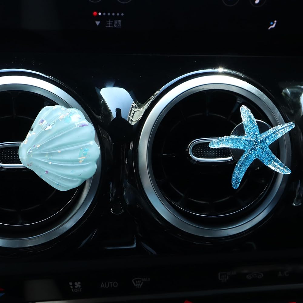 • Ocean-Themed Decor: Add a touch of the sea to your car with these 8Pcs Shell and Starfish Air Vent Clips, featuring vibrant ocean designs.