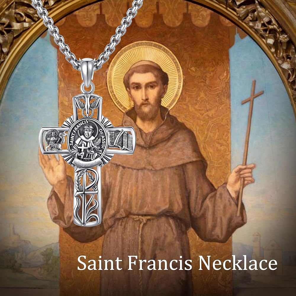 🕆مادة الفضة الإسترلينية 925: قلادة سانت فرانسيس هذه مصنوعة من الفضة الإسترلينية بنسبة 92.5% وهي مضادة للحساسية ومقاومة للتشوه وخالية من النيكل والرصاص والكادميوم. مناسب جدًا للارتداء طويل الأمد، خاصة البشرة الحساسة.