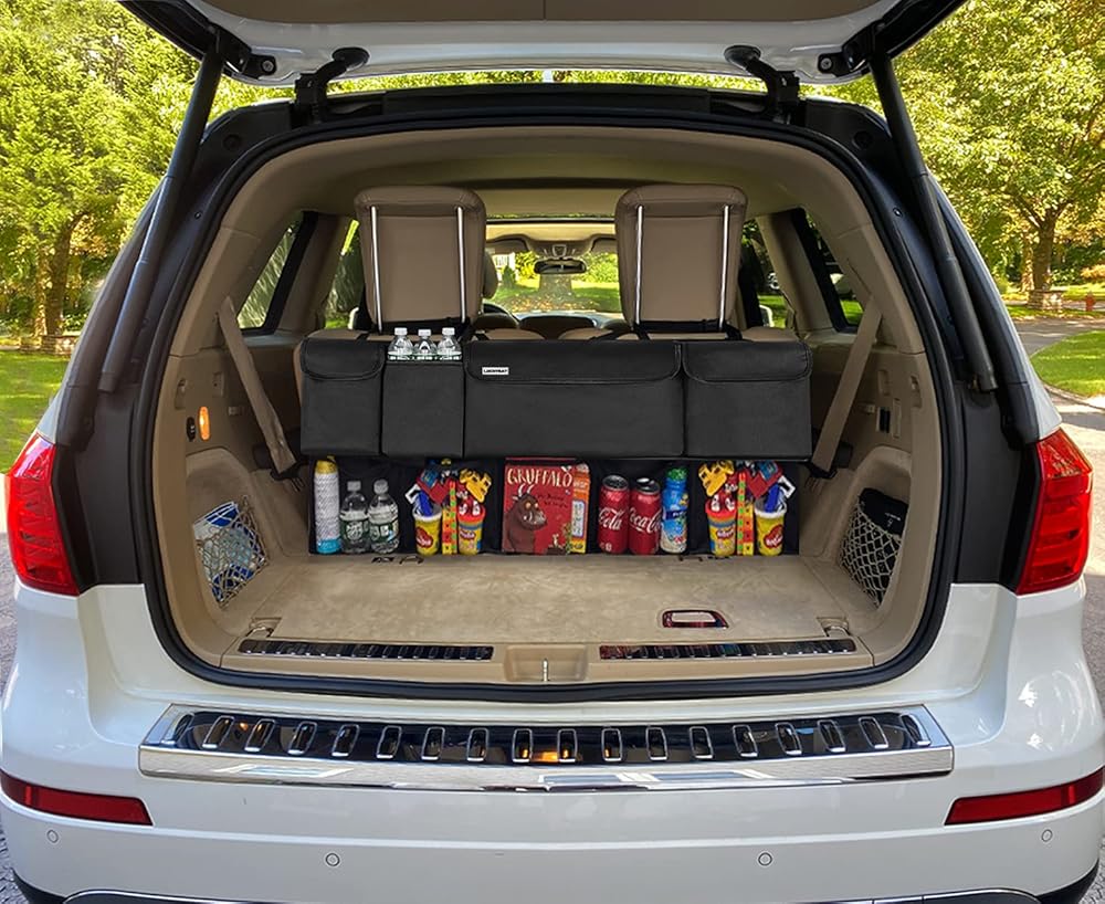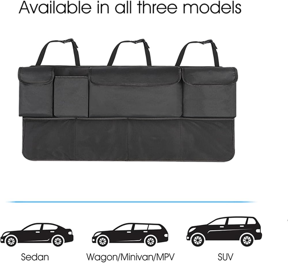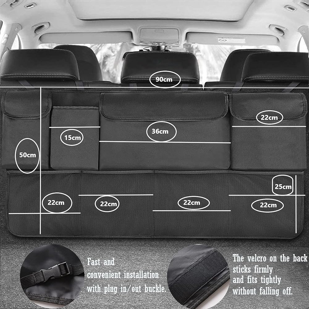 منظم صندوق السيارة Luckybay، منظم تعليق السيارة ذو سعة فائقة مع 8 جيوب، حقيبة تخزين مرتبة مع أغطية، خبير في توفير المساحة