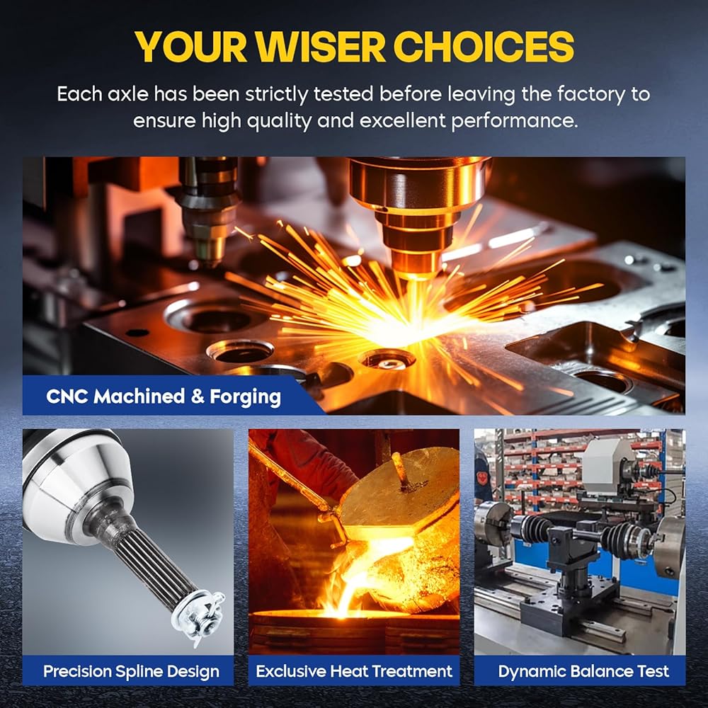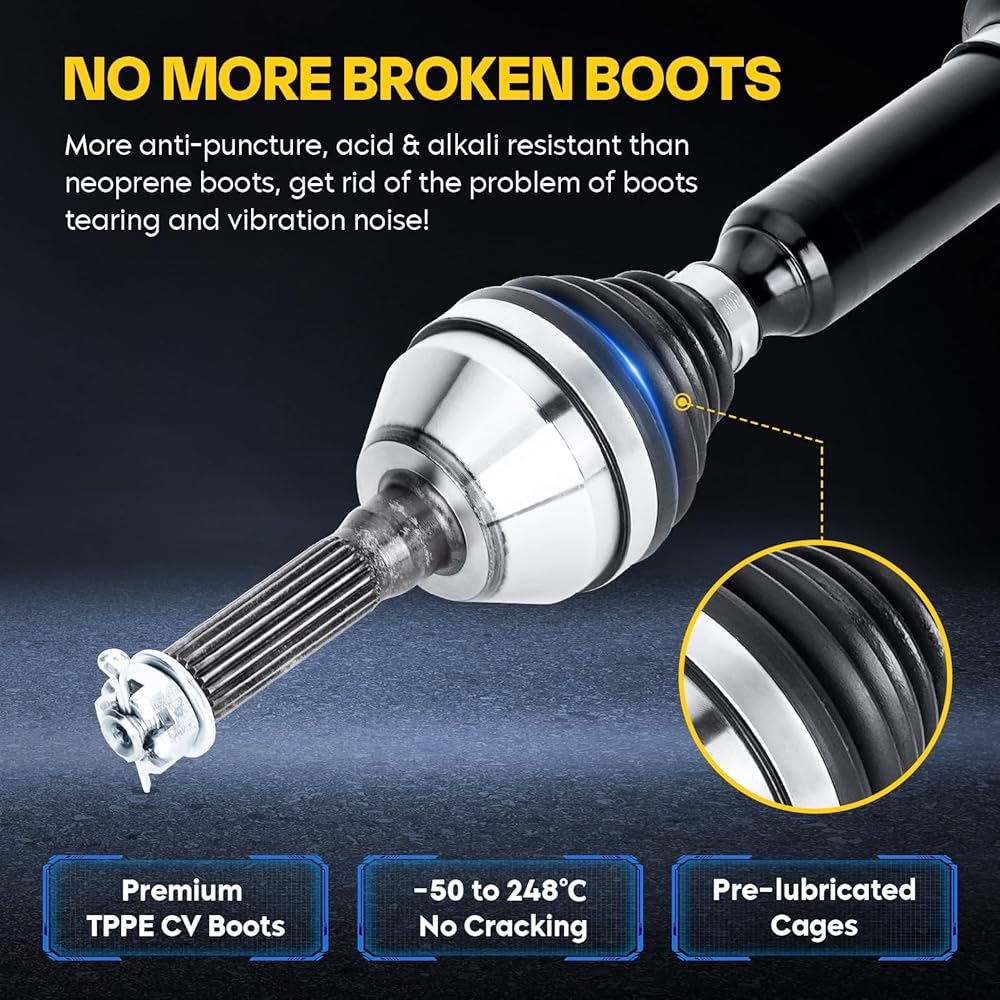 • 💯Upgraded High-Quality Materials: Made of premium TPPE materials, our CV boots are not cracking even at 50 ~ 248℃, more anti-puncture and corrosion-resistant than neoprene boots! The CV shafts are made of 40CrNiMo materials, CNC machined & forged, 650 ℃ high-temperature resistant, satisfying your ultimate driving experience.
