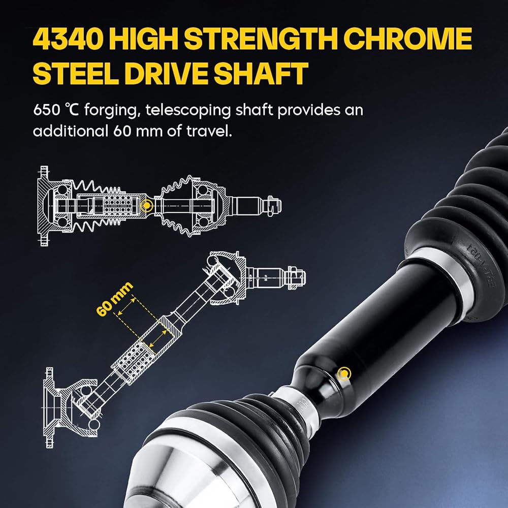 • 🛠️Replaces for: 1332471, 1332501, 1332881; Axle Compressed Length: 539.5 mm (Left & Right); Inner Spline Count: 22 (Left & Right); Outer Spline Count: 20 (Left & Right); The telescoping shaft can increase another 60 mm of travel.