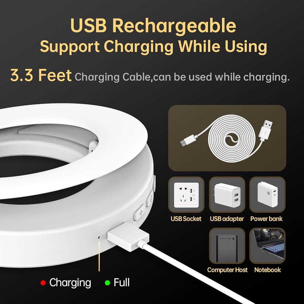 🍑【سعة بطارية رائعة في وضع الاستعداد لفترة طويلة للغاية】بالنسبة للمكياج / البث المباشر / مقاطع فيديو اليوتيوب، وما إلى ذلك، قمنا بترقية ضوء الحلقة هذا خصيصًا إلى بطارية ذات سعة كبيرة تبلغ 350 مللي أمبير، بعد الشحن الكامل، زاد وقت العمل المستمر بمقدار 300 مللي أمبير. %.