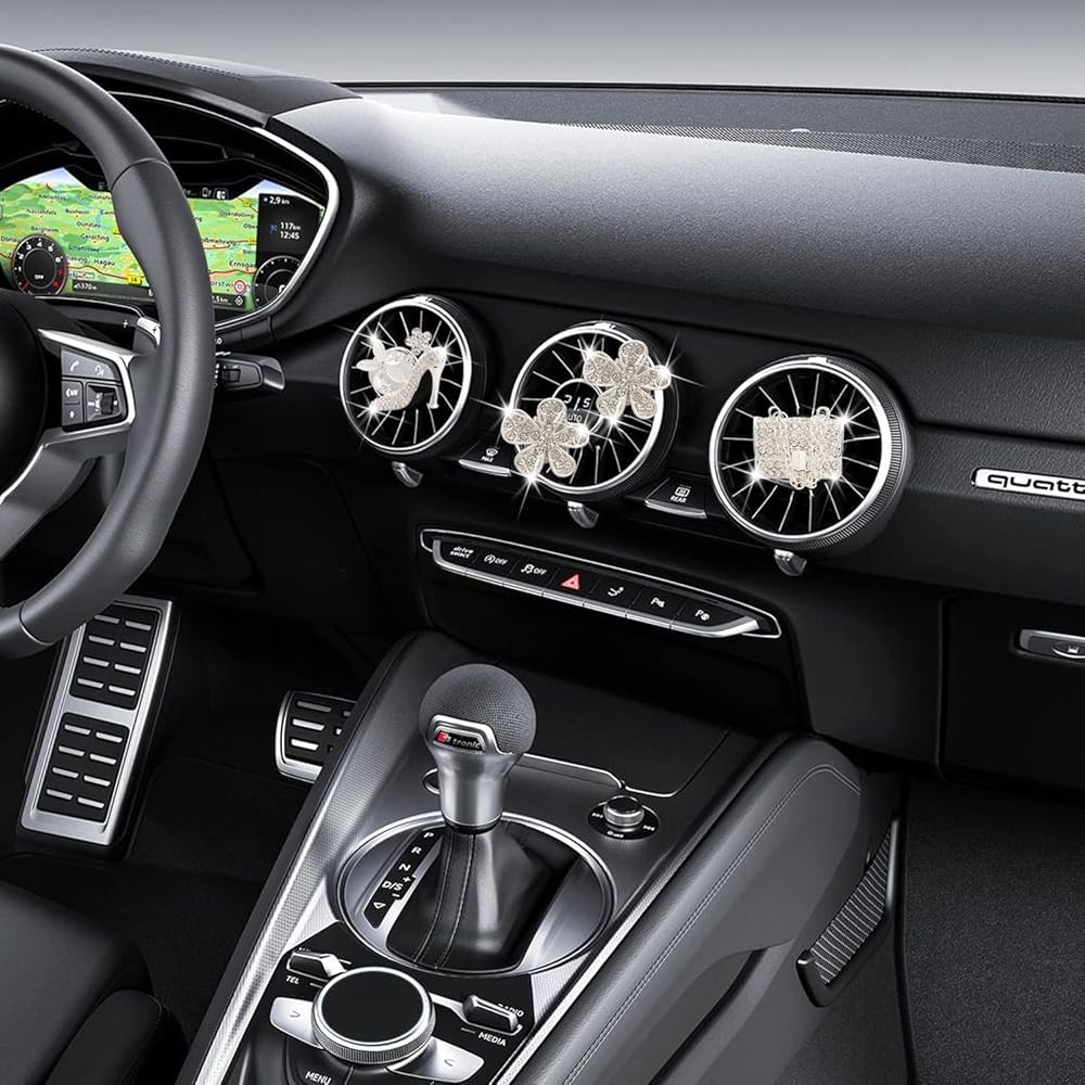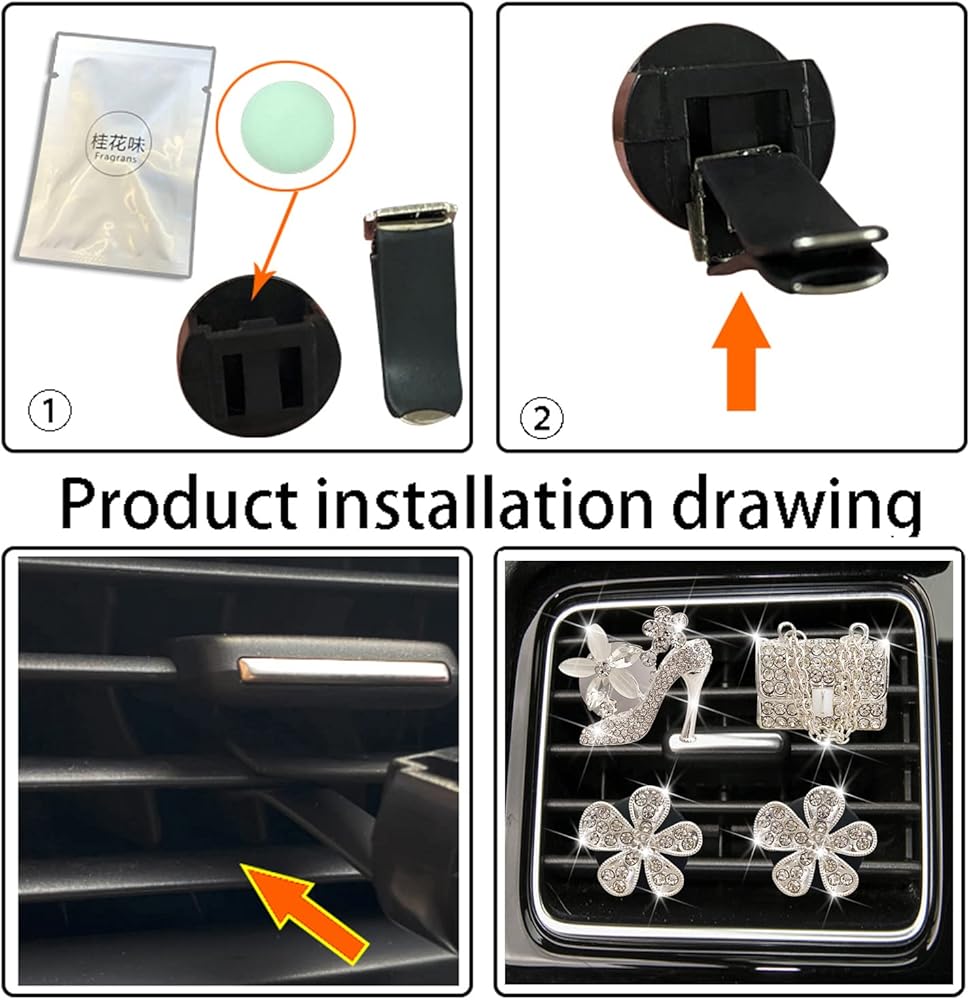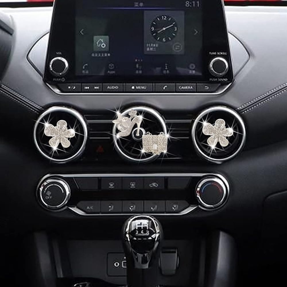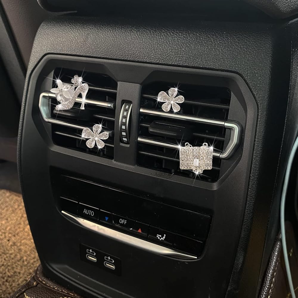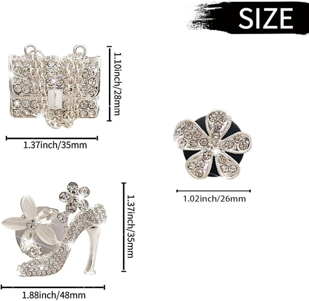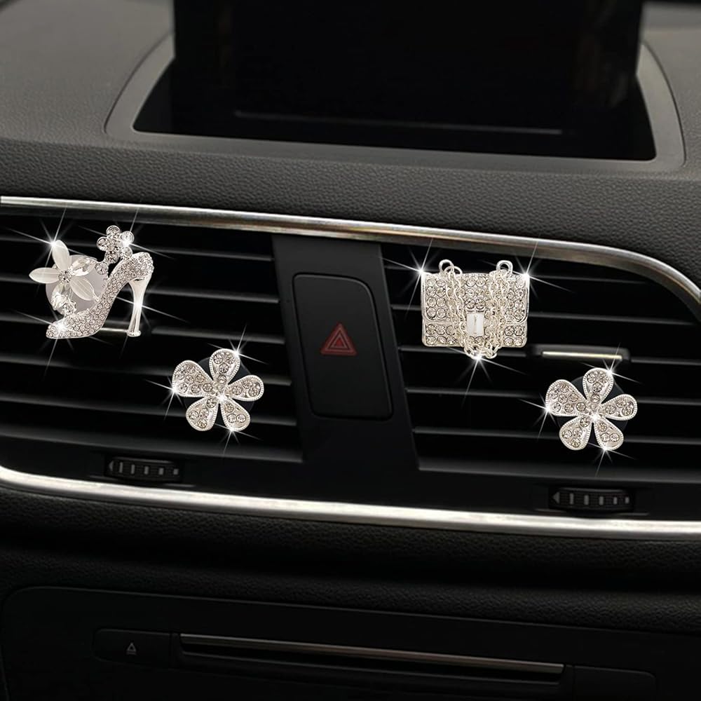 بلينغ أحذية عالية الكعب وحقيبة تنفيس الهواء كليب، 4 قطع الكريستال ديزي سيارة معطرات الهواء تنفيس كليب سيارة الناشر تنفيس كليب حجر الراين الماس سيارة الديكور ديكور السيارة الداخلي بلينغ اكسسوارات السيارات للنساء