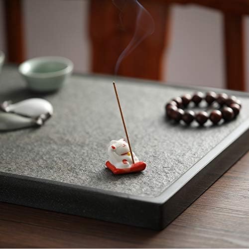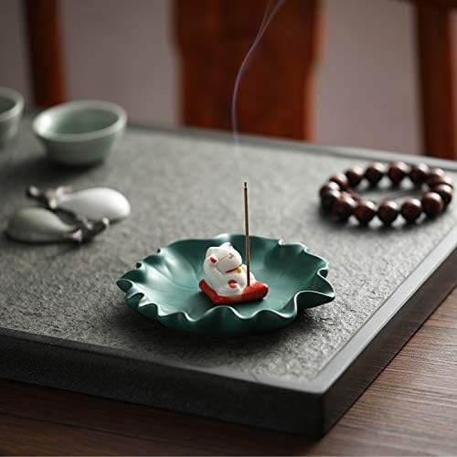 Sizikato Cute Lucky Cat Incense Burner Incense Stick Holder with Lotus Leaf Tray.