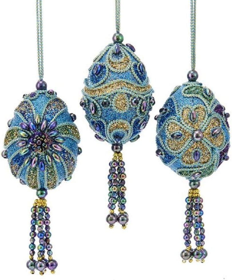Kurt Adler Mini Peacock Egg Ornaments Set of 3 Assorted.