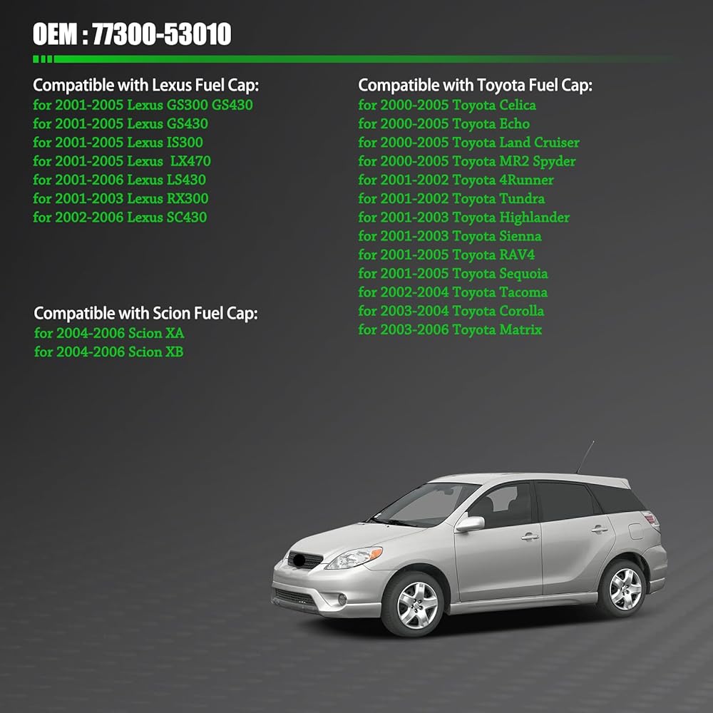 For Le-xus & Scion Gas Cap Replacement: 77300-53010 Fuel Cap compatible with 2001-2005 GS300 GS430 IS300 LX470 , 2001-2006 LS430 , 2001-2003 RX300 , 2002-2006 SC430 ,2004-2006 Scion XA XB Fuel Tank Caps .