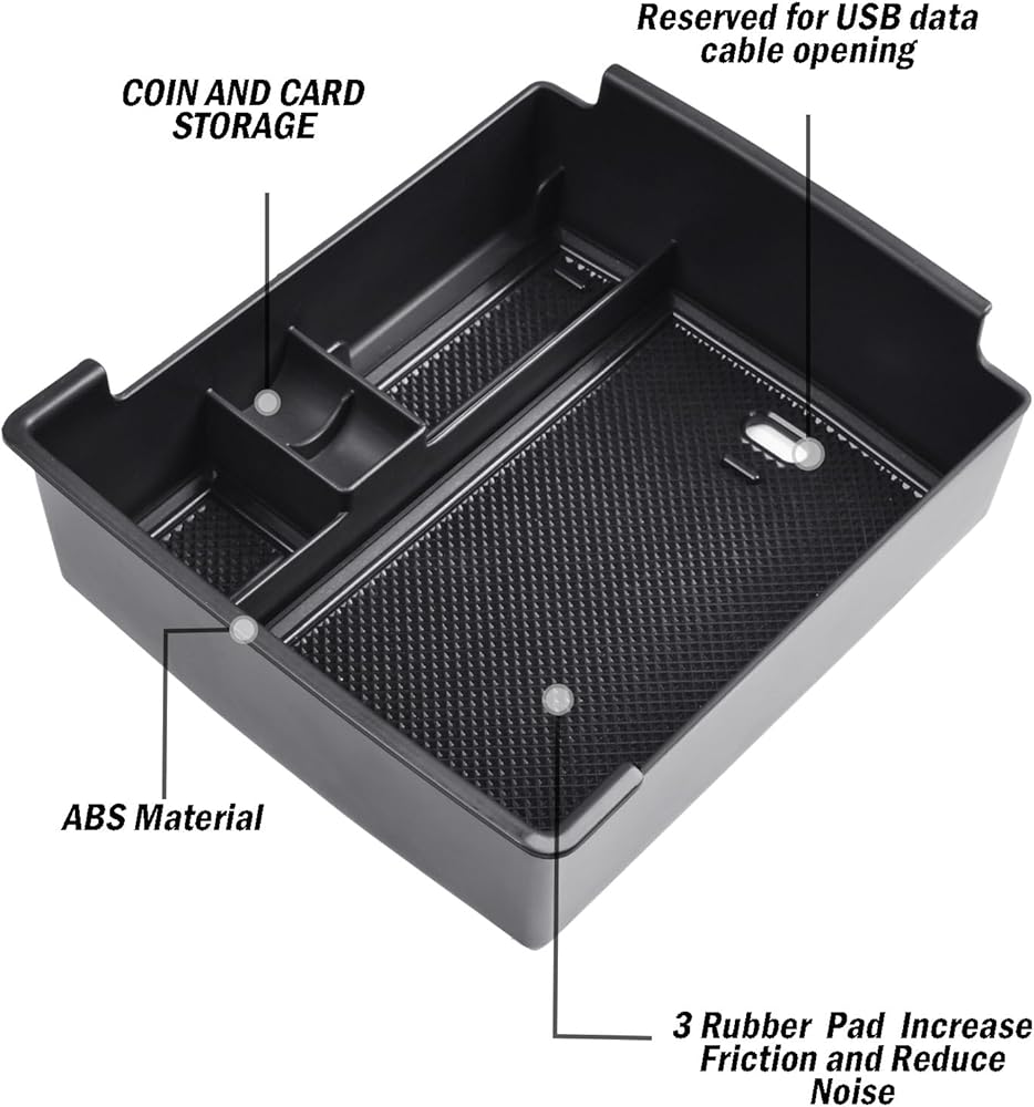 مادة. مصنوعة من مادة ABS القوية ذات حواف سميكة لا يمكن كسرها بسهولة. تمنع وسادة الوسادة المطاطية التي تأتي مع العبوة الأشياء من التدحرج والضوضاء غير الطبيعية أثناء القيادة.
