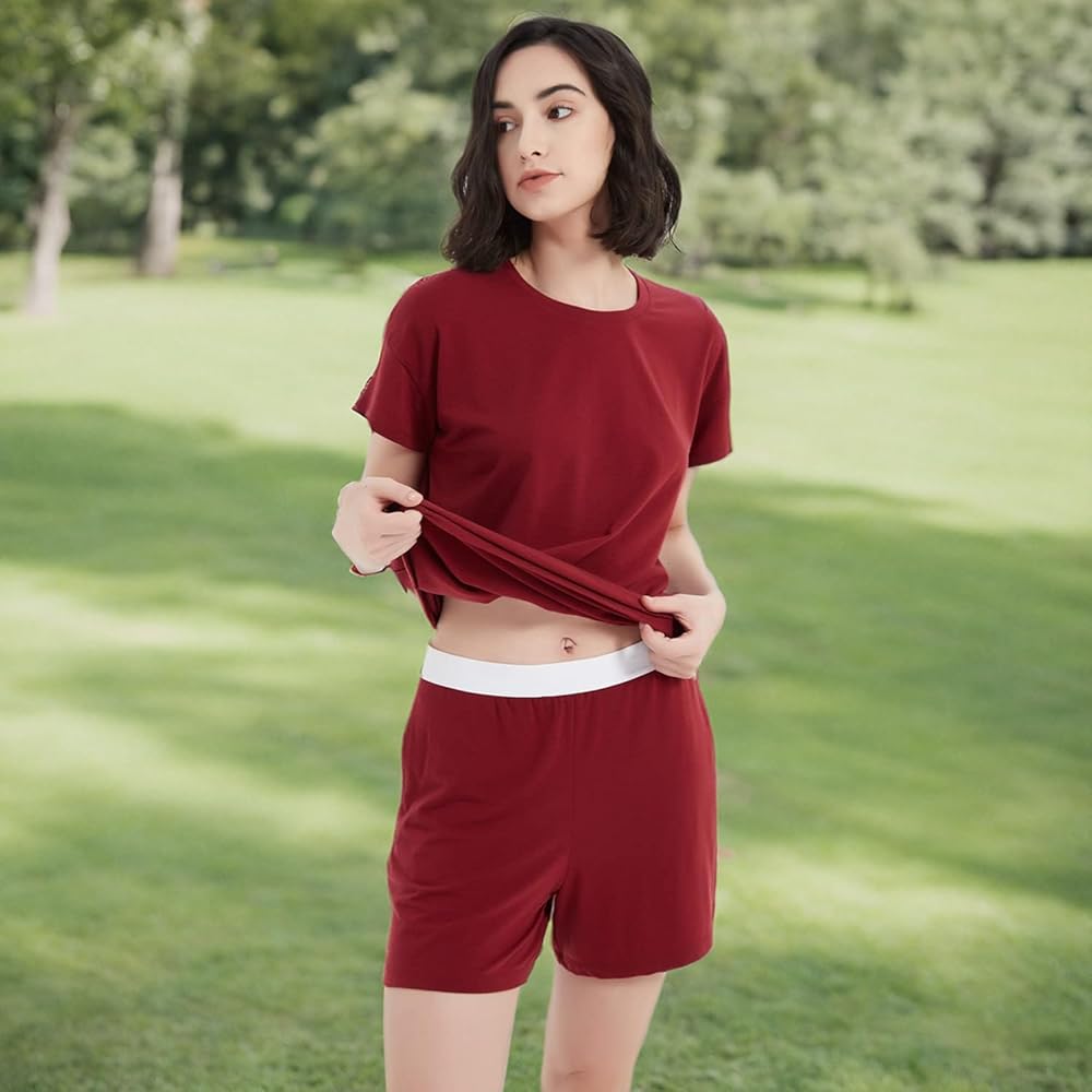 Stylish Design: The short sleeve top and matching shorts feature a sleek, minimalist design with a flattering fit. The timeless style ensures you look as good as you feel, whether you're lounging at home or getting ready for bed.