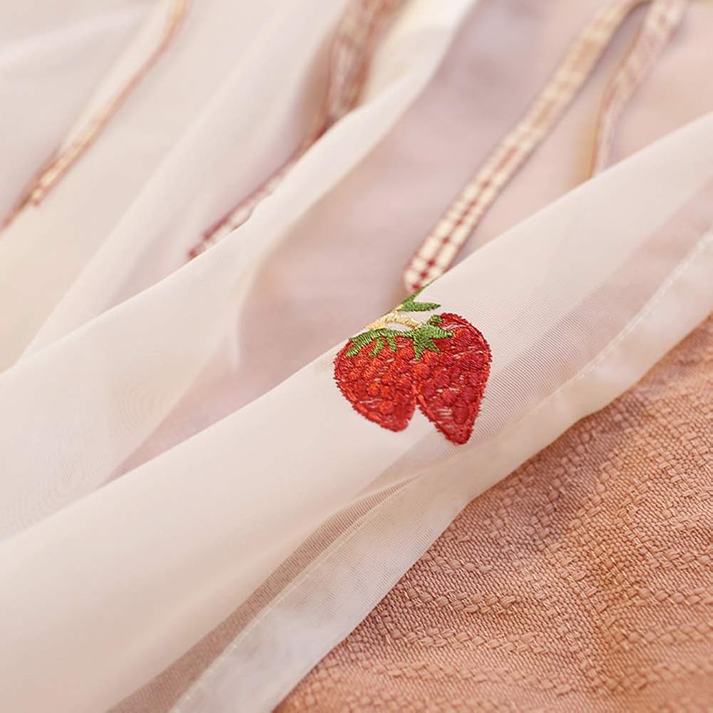 تشمل العبوة: تحتوي كل عبوة على لوحة ستارة شفافة مطرزة بالفراولة. مقاس اللوحة 59 عرض × 51 طول. تصميم جيب القضيب يسمح بسهولة التعليق على قضيب الستارة القياسي.