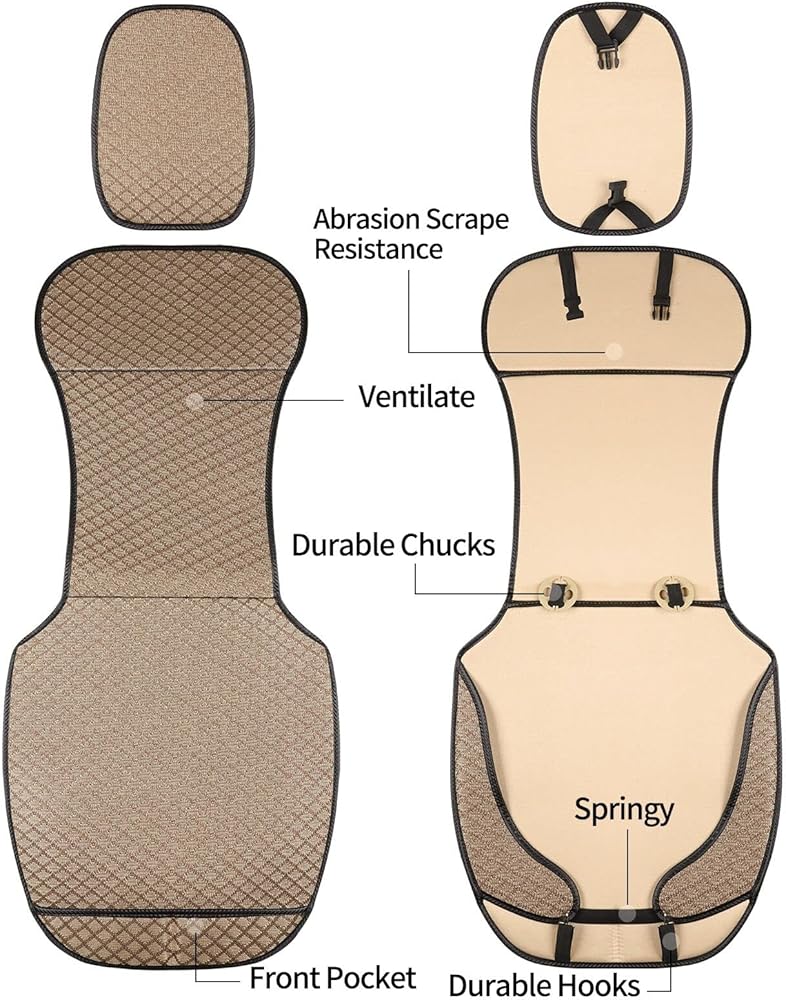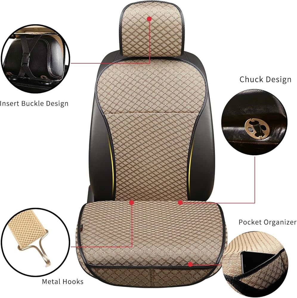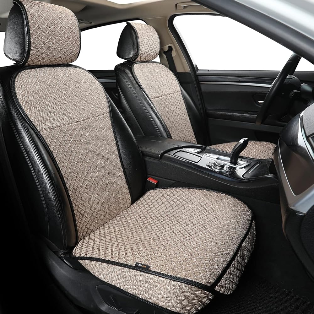 غطاء مقعد السيارة جيد التهوية، واقي المقعد الأمامي، غطاء مقعد السائق الفاخر، وسادة مقعد السيارة العالمية، مناسب لجميع المواسم، متوافق مع الوسادة الهوائية (بيج، قطعتين)