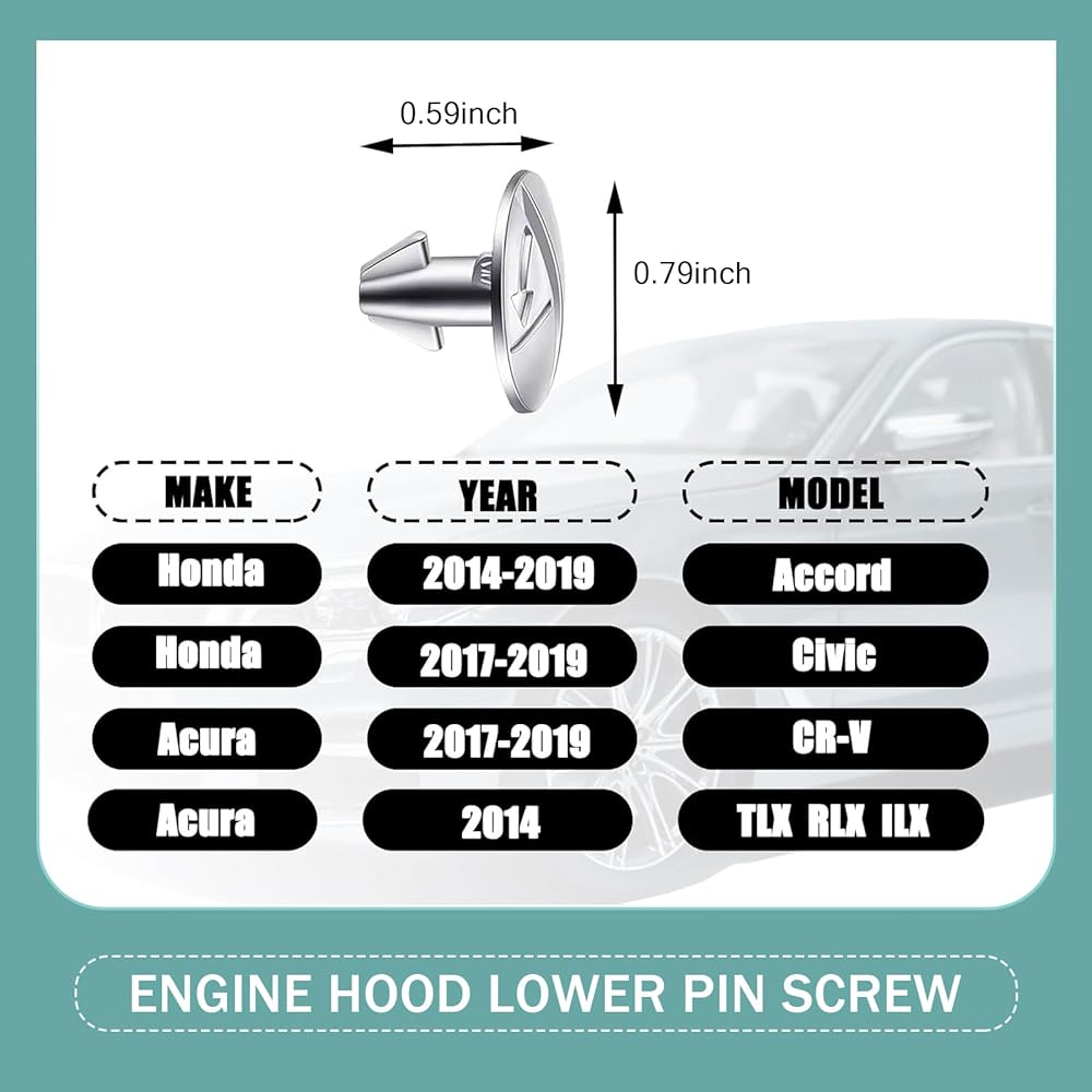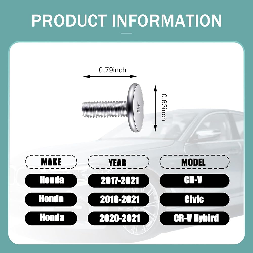 • Compatibility: This lower engine cover pin screw is perfectly compatible with Honda Accord Civic CRV, and is specially designed for these car. Before purchasing, please check the model to ensure compatibility.
