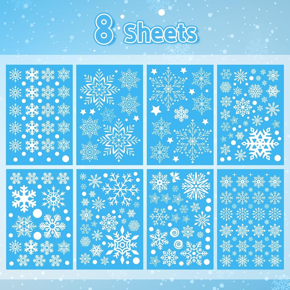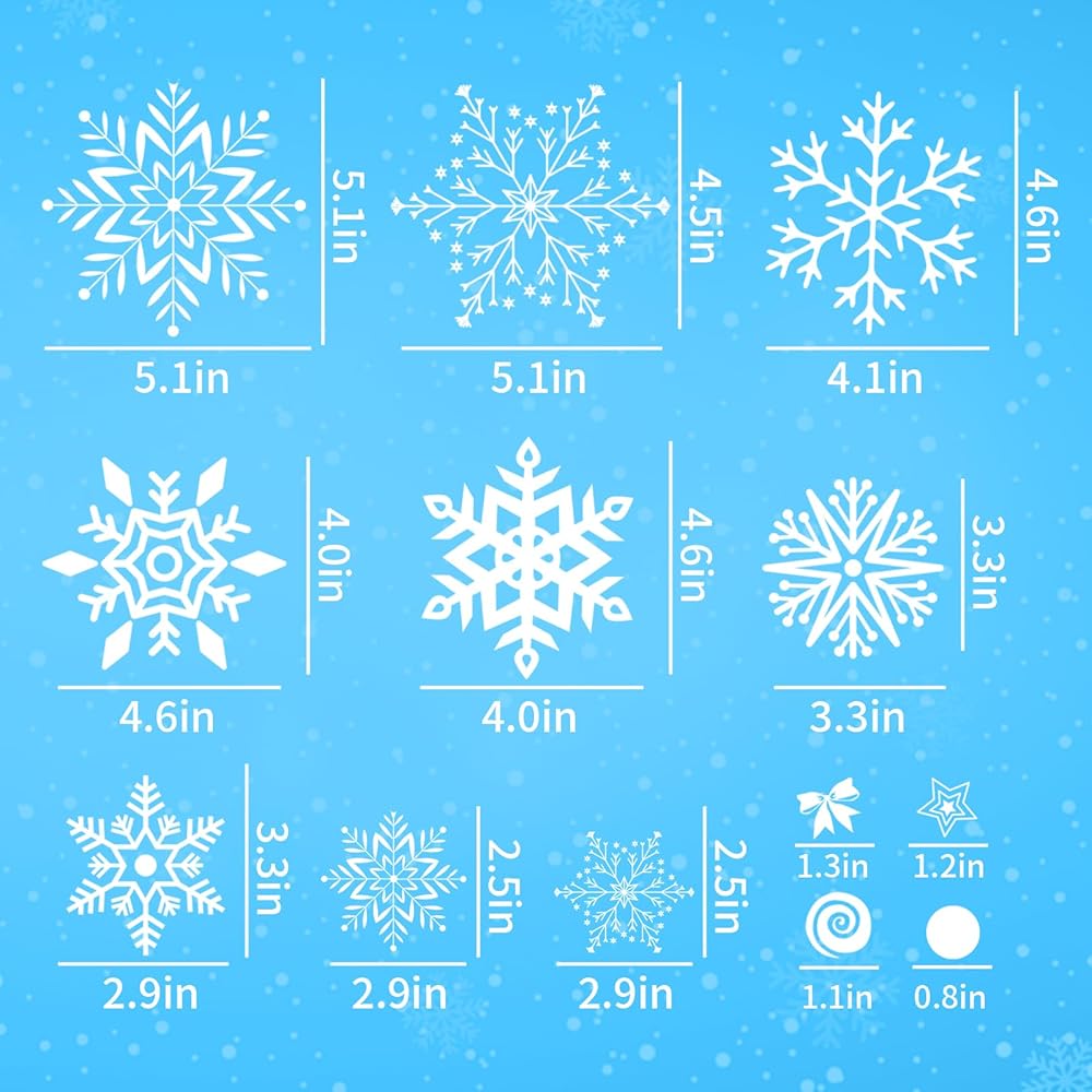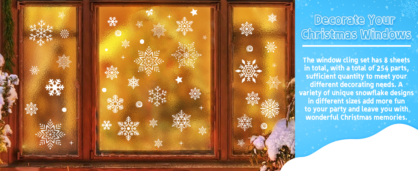 تشمل العبوة: 8 أوراق لاصقة للنوافذ على شكل ندفة الثلج، إجمالي 254 نمطًا بأنماط مختلفة، كمية كافية لإضافة جو احتفالي وتلبية احتياجات المناسبات المختلفة.