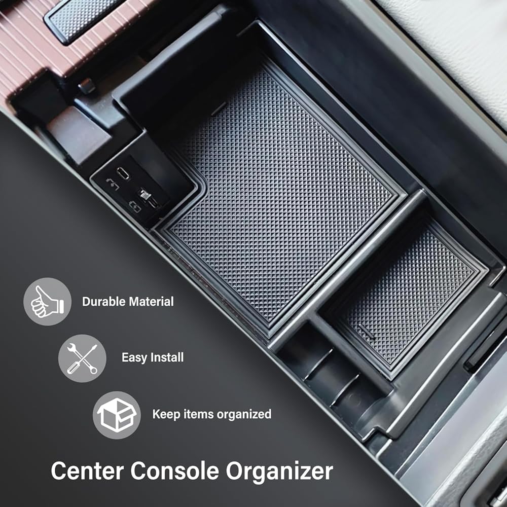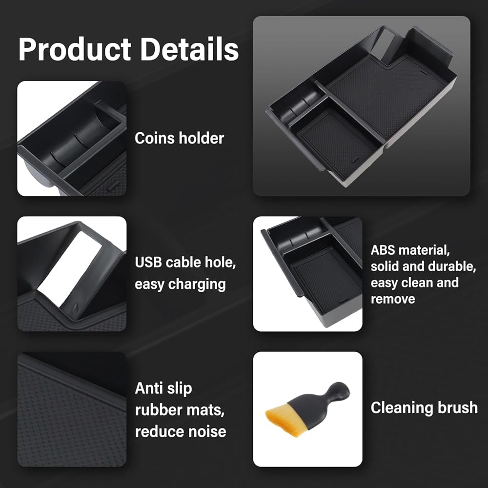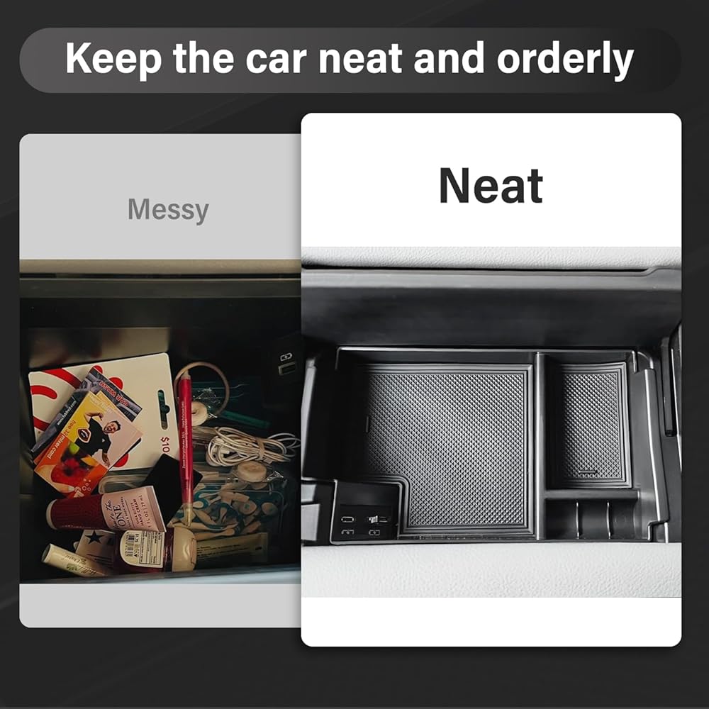 تخزين منظم: يقوم صندوق تخزين السيارة هذا بتخزين العناصر الصغيرة بشكل مريح مثل الهواتف والمحفظة والمفاتيح والنظارات الشمسية والعملات المعدنية وأكثر من ذلك، ويحافظ على العناصر الصغيرة المستخدمة غالبًا بجانبك، مما يحافظ على وحدة التحكم المركزية الخاصة بك أنيقة ومرتبة