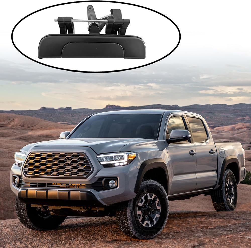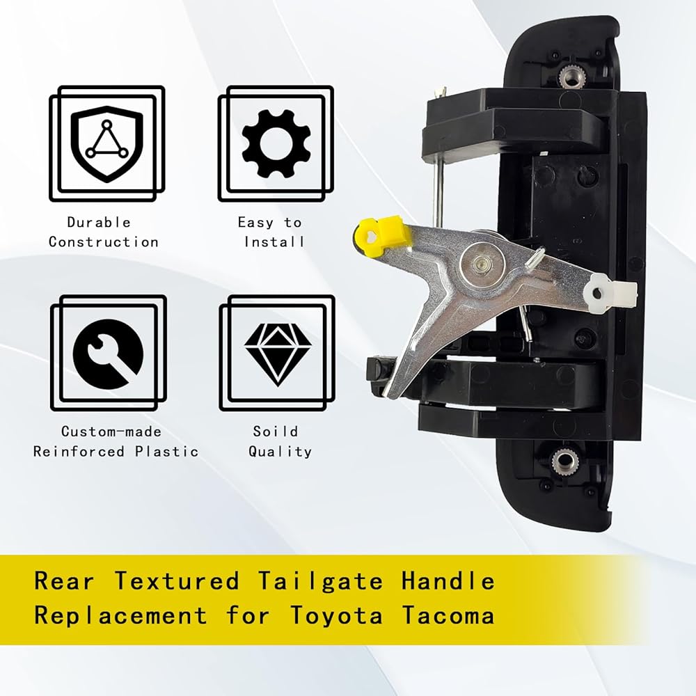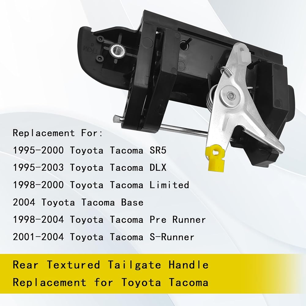 Tail gate Door Handle, Black Outside Liftgate Lock Latch Compatible with 1995 1996 1997 1998 1999 2000 2001 2002 2003 2004 Toyota Tacoma Pickup, Replace# 6909035010 TO1915102