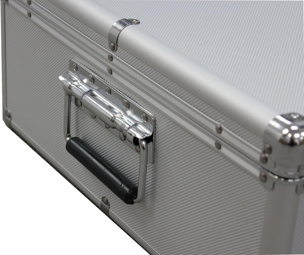 Large aluminum case for carry or store Max. 1000 CD or DVDs. Keep your discs safe and secure. Has two key locks for security and comes with a set of 2 keys.