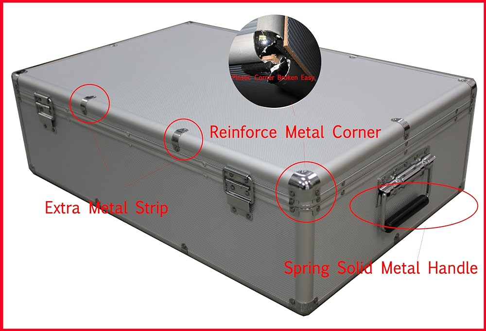 Chrome metal corner and extra strip reinforce the case to more solid and durable.