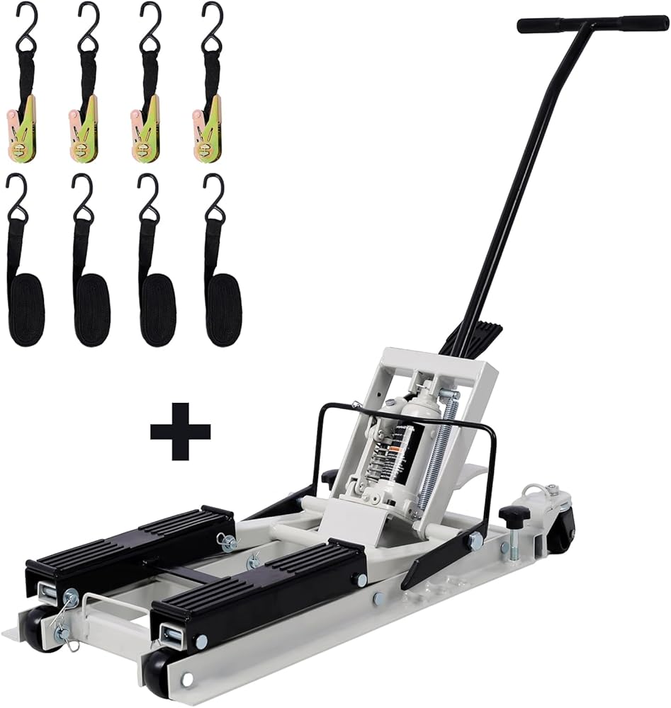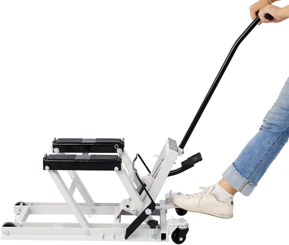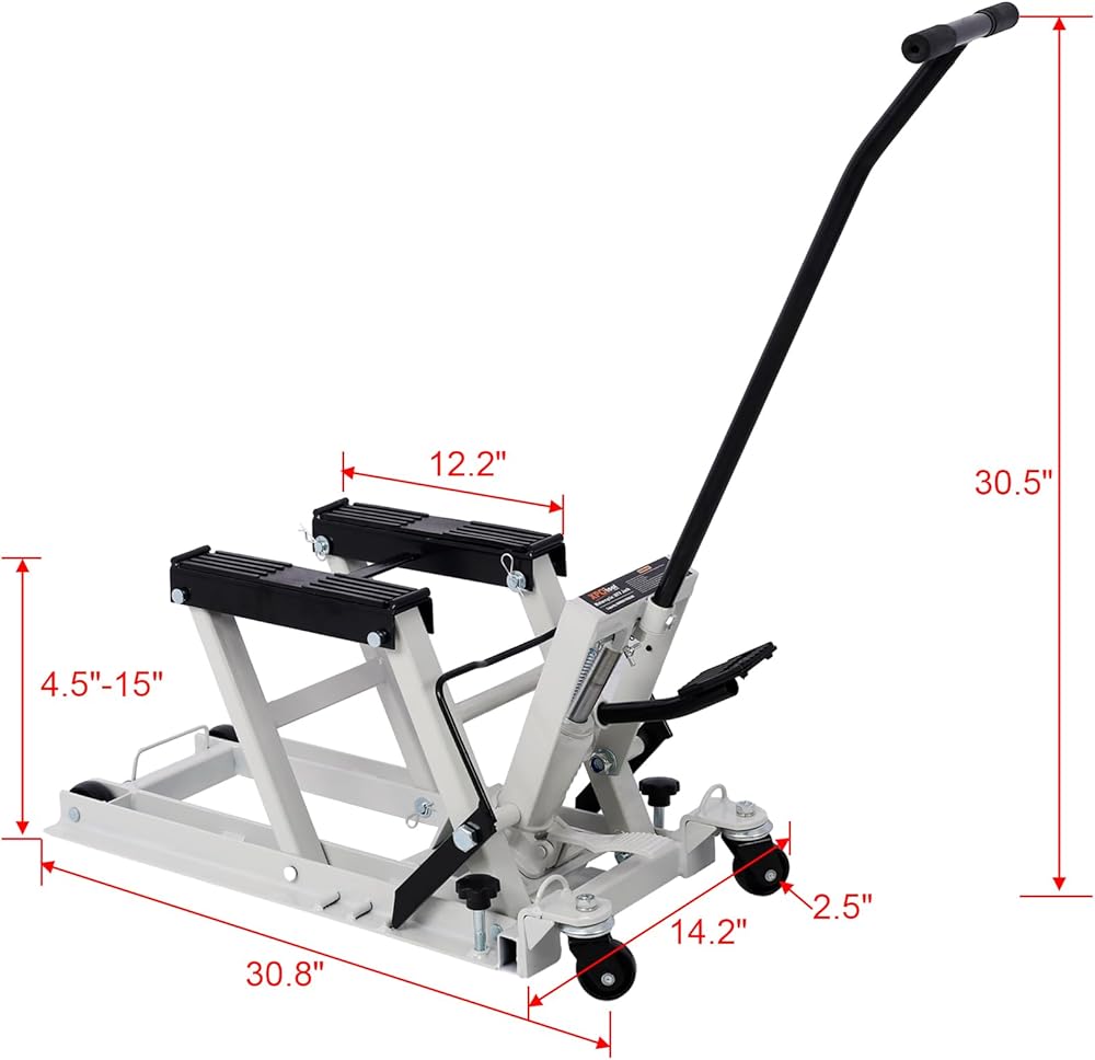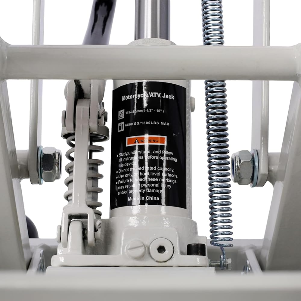 Superior Weight-bearing Capacity: Tested and proven to securely hold up to 1500 lbs/0.7 tons, this jack is a reliable ally for lifting various motorcycles including standard bikes, touring bikes, ATVs, and more in your garage.