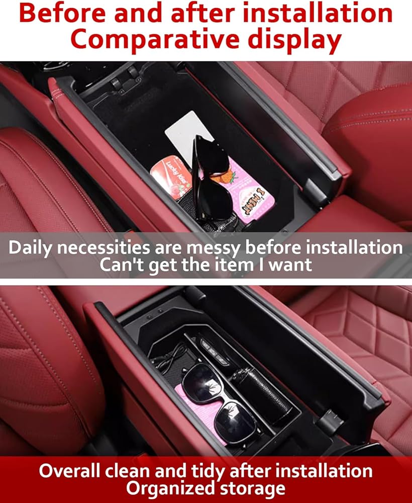 استخدم مساحة تخزين إضافية بكفاءة: منظم وحدة التحكم المركزية G60 يجعل أغراضك منظمة جيدًا، ويحافظ على نظافة سيارتك بمساحة إضافية ويتيح لك الوصول بسرعة إلى الأشياء أثناء القيادة. إنها مناسبة للنظارات والهاتف المحمول والمفاتيح وصندوق المناديل وغيرها من العناصر المطلوبة بشكل متكرر. تتيح لك الحصول على ما تريد في متناول يدك.
