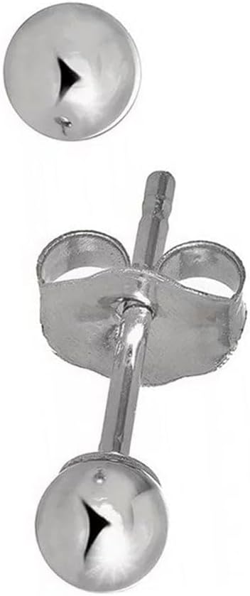أقراط كروية من الذهب الأبيض الحقيقي عيار 14 قيراط مع ظهر احتكاك ذهبي - 3 مم