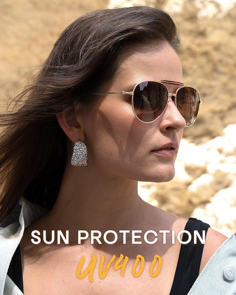 نظارات شمسية كلاسيكية أفياتور: تتميز هذه النظارات الشمسية بتصميم أفياتور خالد مع إطار ذهبي، مما ينضح بالفخامة والأناقة. إنها مناسبة لجميع أشكال الوجه، مما يعزز مظهرك العام.