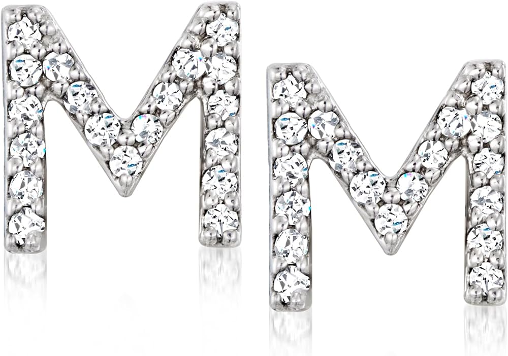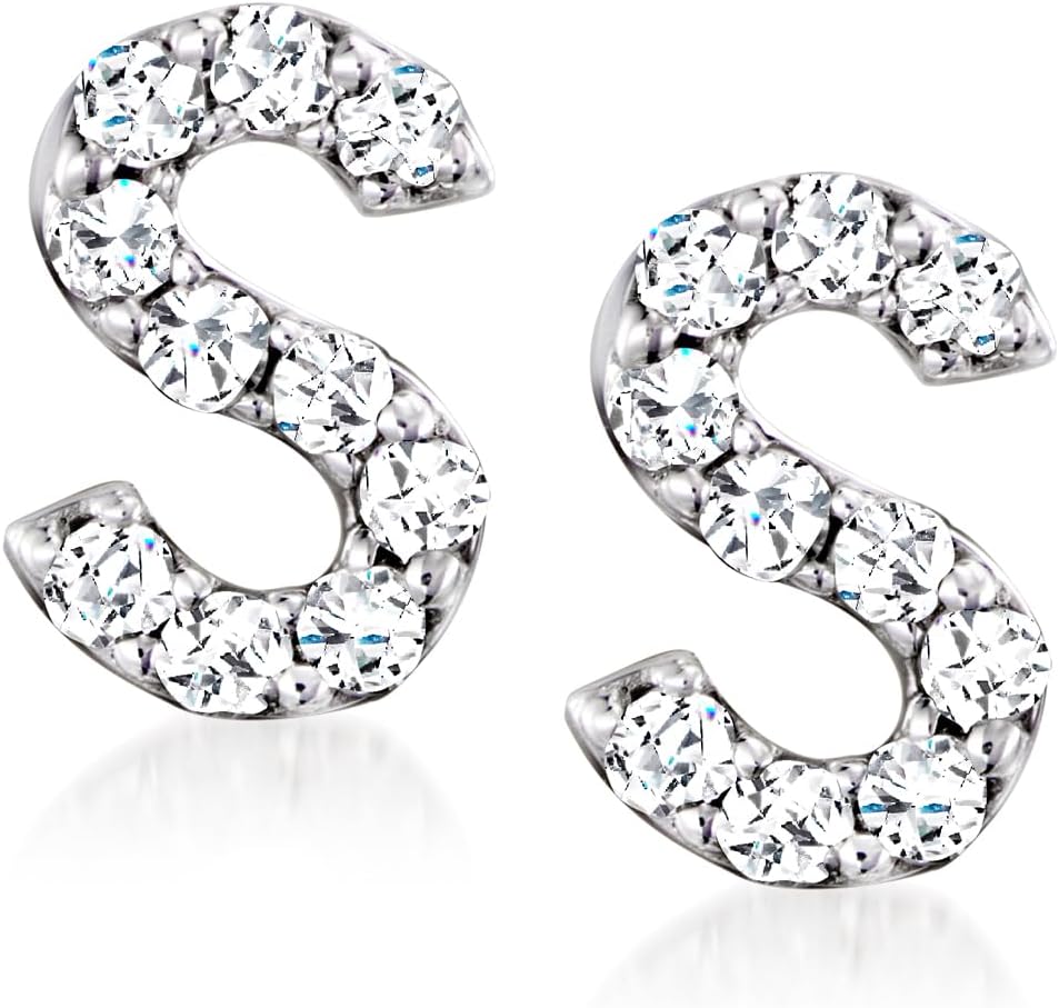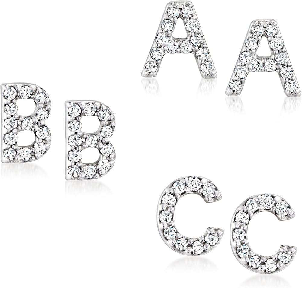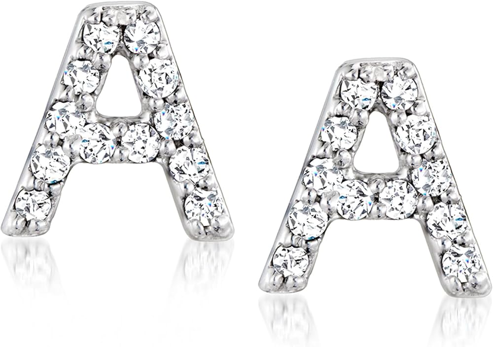 أقراط RS Pure من Ross-Simons الماسية الأولية من الفضة الإسترليني