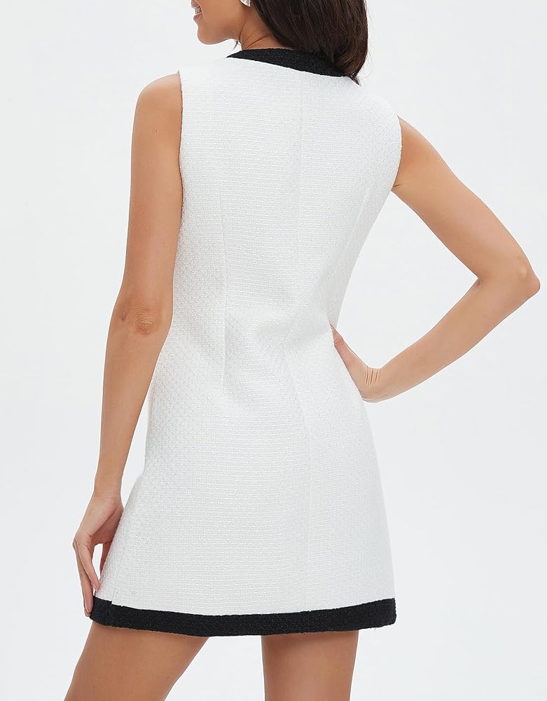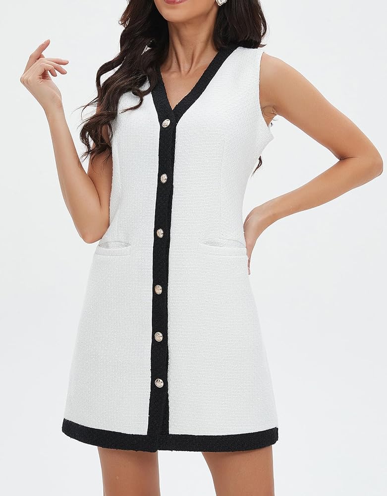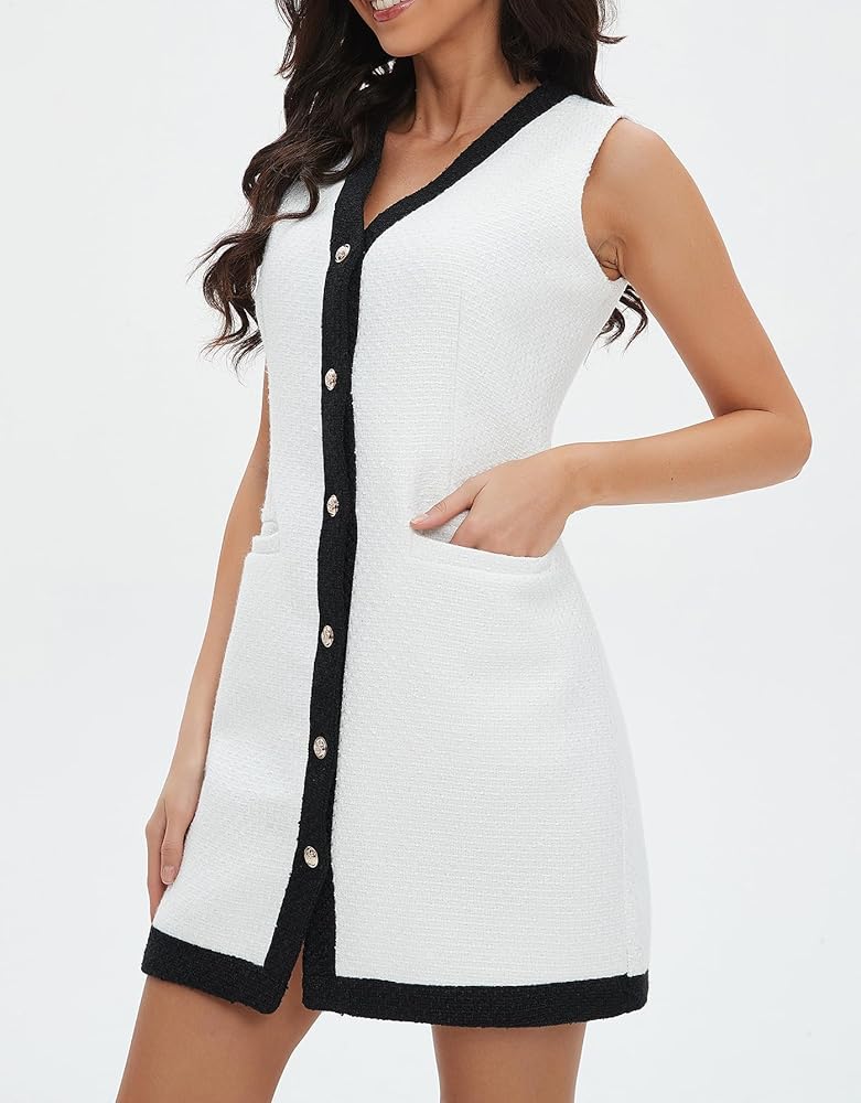 فستان تويد قصير للنساء يتماشى مع الكعب العالي والأحذية الرياضية والأحذية اللوحية والصنادل والأحذية الأخرى التي ترغب في ارتدائها، مريح ومريح للارتداء اليومي والمناسبات الخاصة.