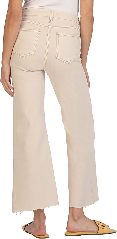 KUT from the Kloth Meg جينز عالي الارتفاع Fab Ab بحاشية خام واسعة الساق في Milestone - جينز للنساء - خامات خام Ecru 18 One Size