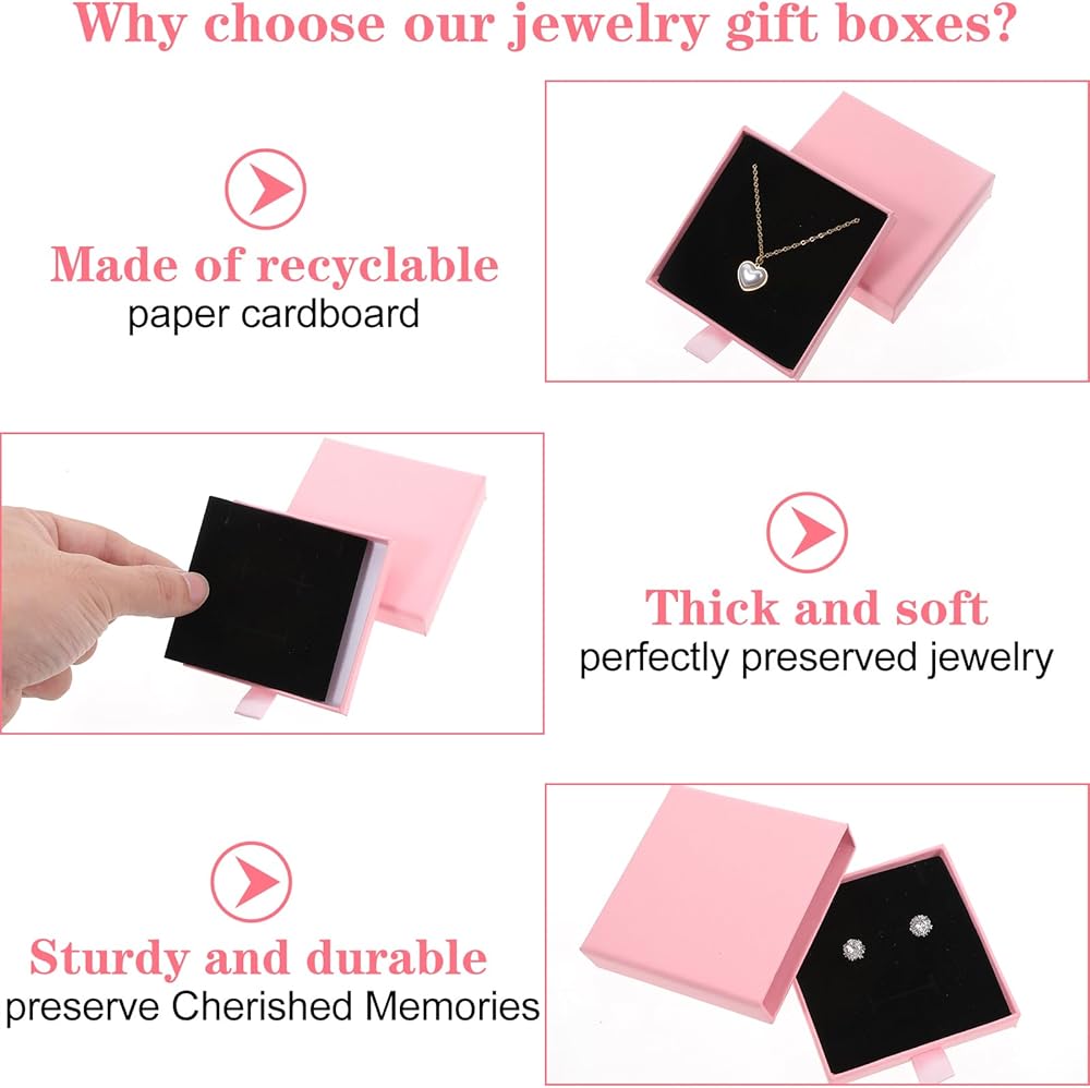 • Premium Material: Our small gift boxes are crafted from premium cardboard, offering lightweight durability that protects jewelry from dust and damage. Equipped with soft foam pads, they ensure gifts arrive safely, enhancing your gifting experience