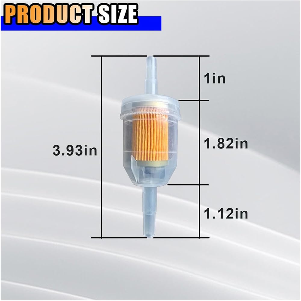 【Unique Design】:The gasoline filter is exquisitely designed with a semi transparent main body, which can check the fuel content and debris. When replacement is needed, existing hoses can be used to clamp it out without the need for other additional accessories.