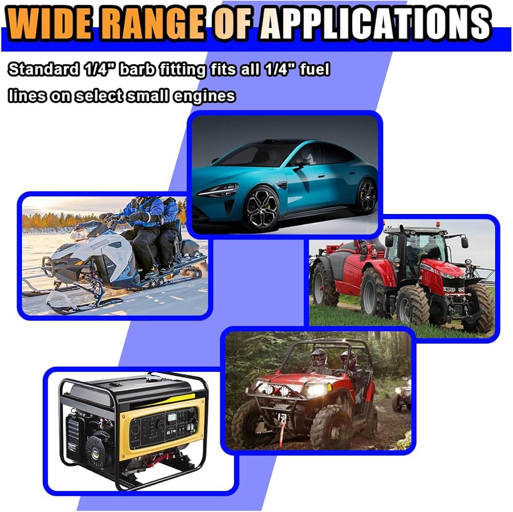 -Universal fit with 1/4" or 5/16" fuel lines on many models.