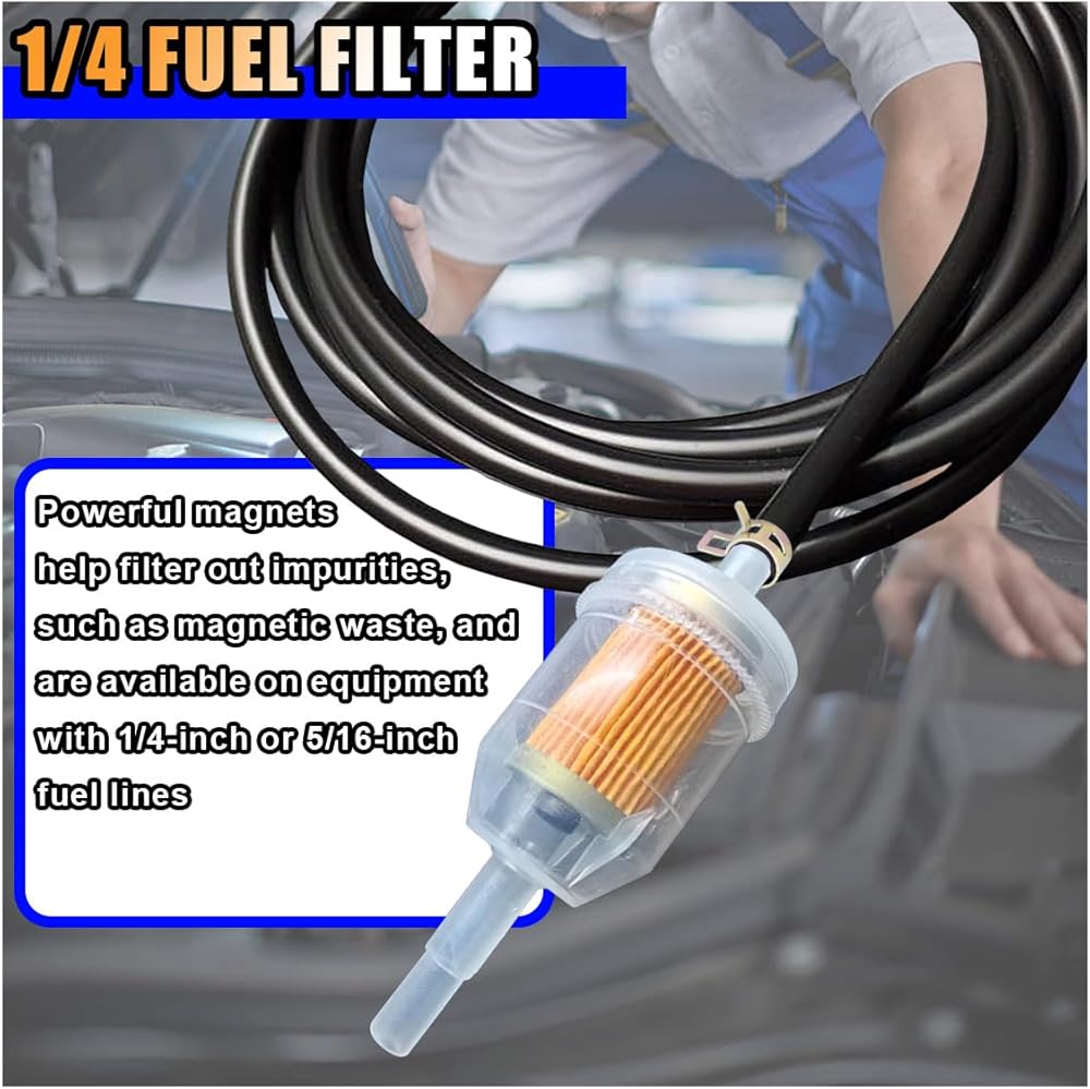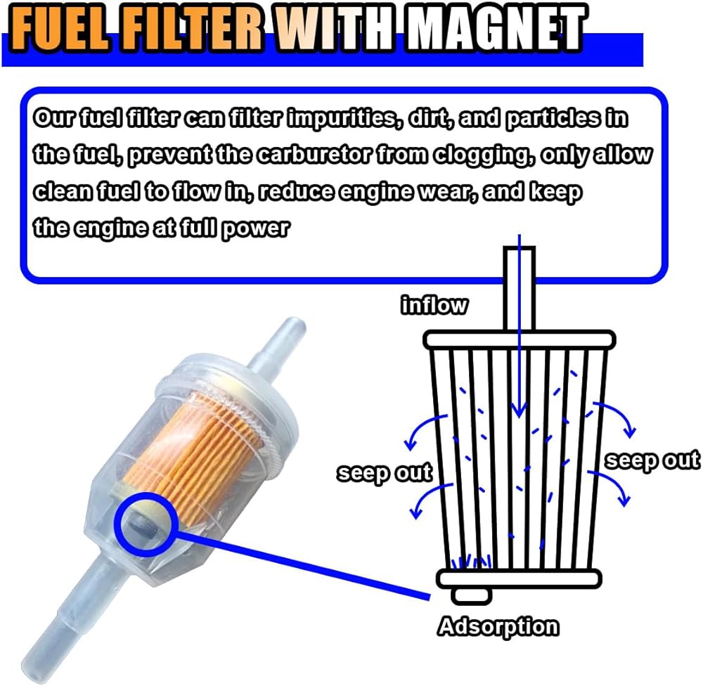 【Application】:This universal fuel filter with magnet is suitable for motorcycles, scooters, small tractors, lawn mowers, snowplows, gardening machines, go karts, generators, and more.