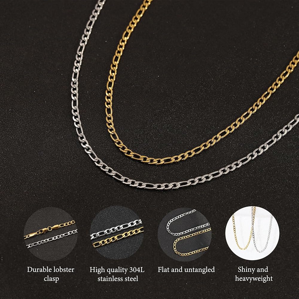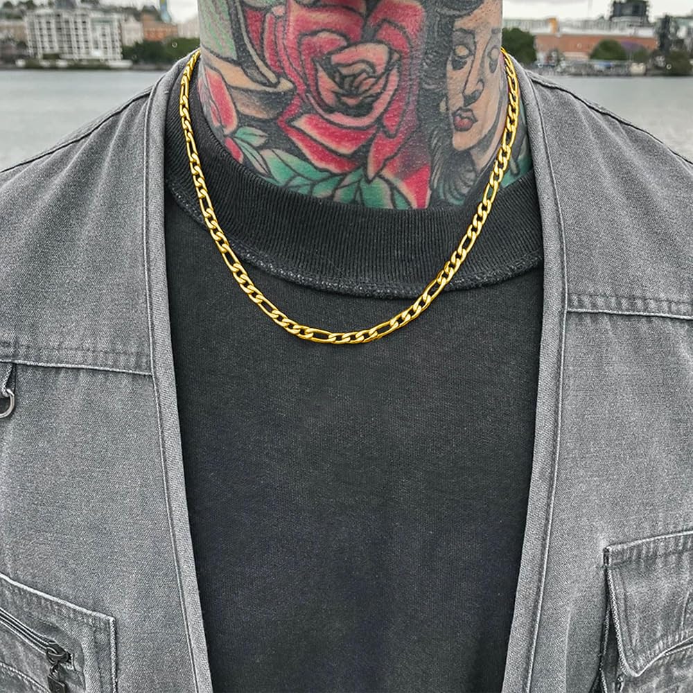 • TIMELESS FIGARO DESIGN: Our men's chain necklace feature the classic and enduring Figaro chain design, combining sophistication with a touch of contemporary style for a timeless accessory