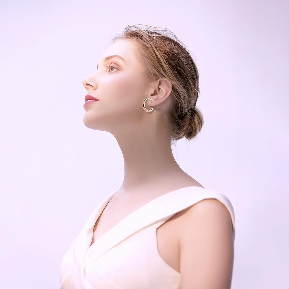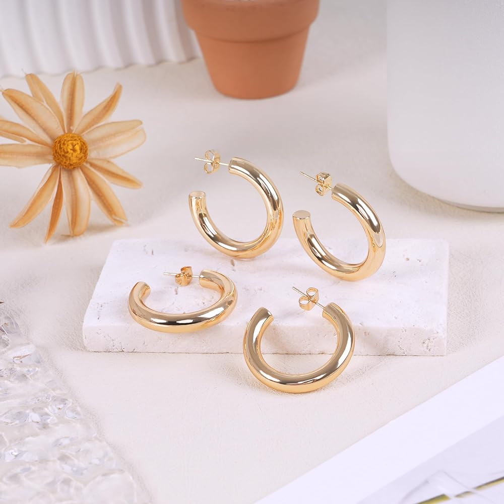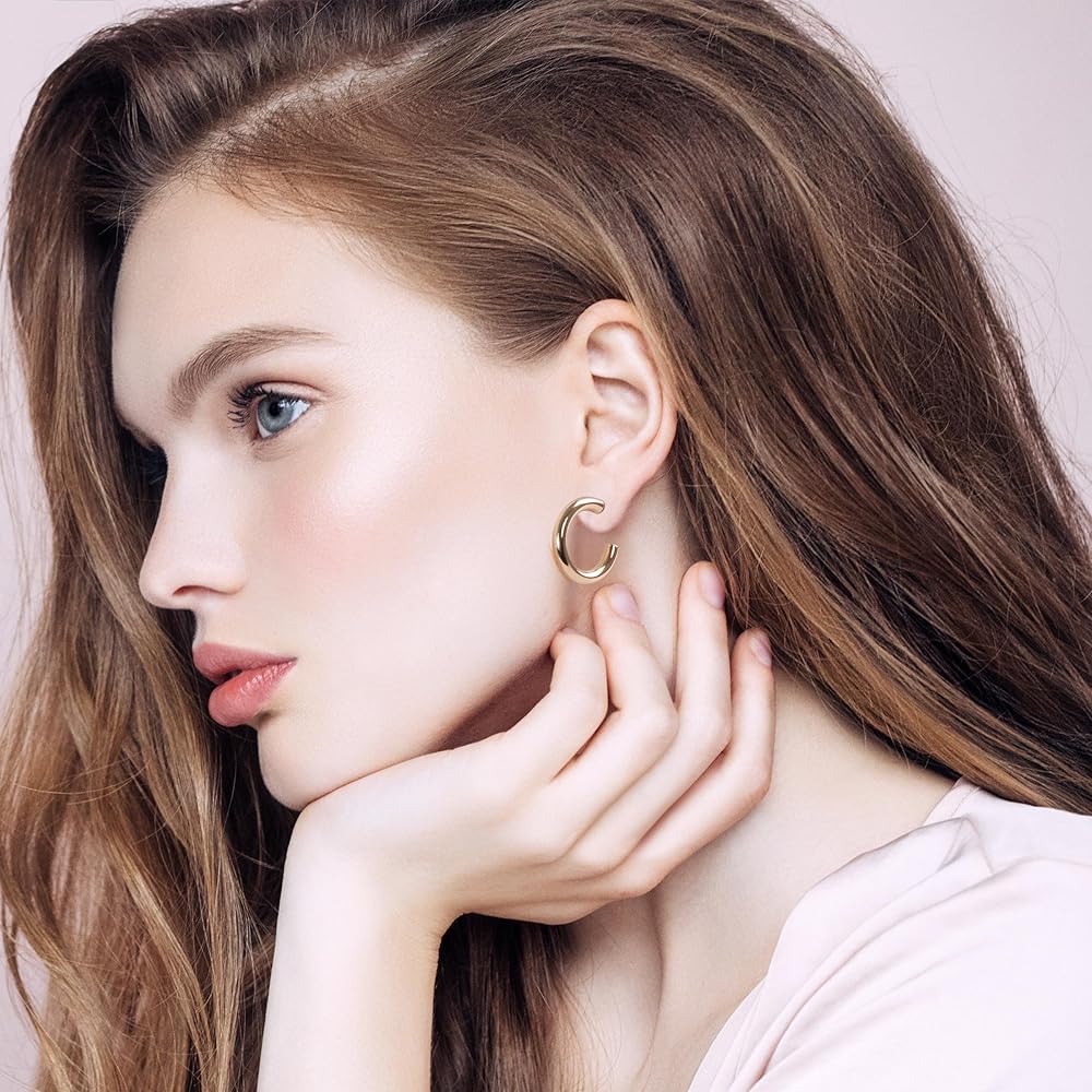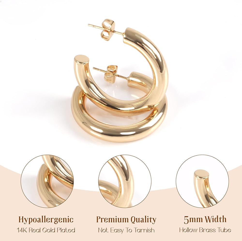 Versatile Styling These chunky gold hoop earrings offer a modern twist to a classic accessory, perfect for elevating any outfit, from casual to dressy occasions. Comfortable Wear Crafted to be lightweight and comfortable, these mini hoop earrings are ideal for all-day wear, ensuring you stay stylish and comfortable from morning to night. Hypoallergenic Assurance With 14K gold plated brass, these gold huggies earrings are hypoallergenic, making them suitable for even the most sensitive ears. Durable Quality Crafted with 14K real gold plating and premium copper hypoallergenic material, these gold chunky earrings for women boast a long-lasting finish and solid feel, ensuring they remain a cherished accessory for years to come. Easy Maintenance With their 14K gold plating, these real gold hoop earrings are not only nickel-free and lead-free but also require minimal upkeep, allowing you to enjoy their beauty without worrying about tarnishing or discoloration. Thoughtful Gift Option These well-packaged thick hoop earrings for women make a perfect gift for various occasions, including birthdays, anniversaries, and holidays, showing your loved ones how much you care.