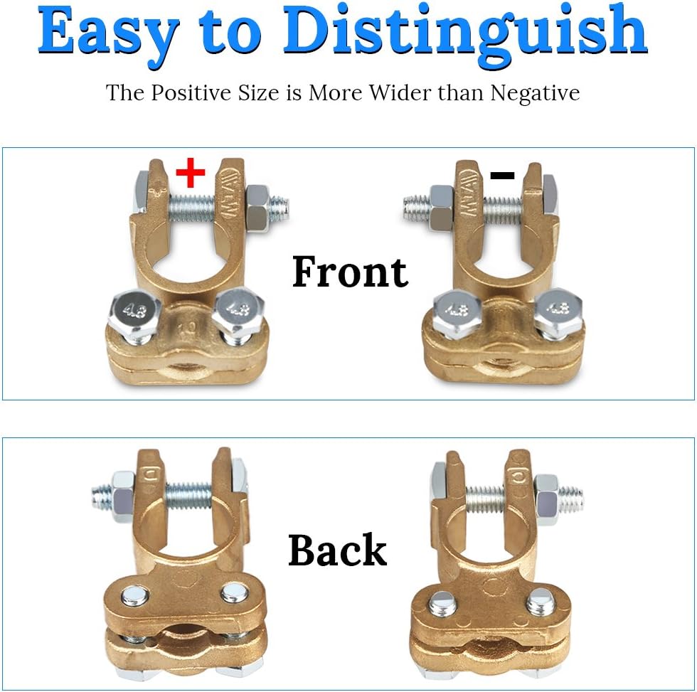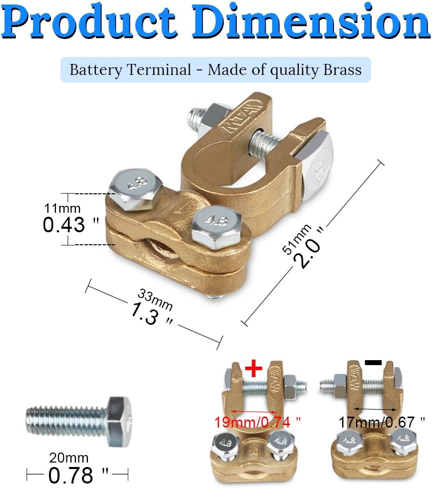 تحتوي العبوة على 1 * طرف بطارية إيجابي (19 مم) + طرف بطارية سالب (17 مم)، ما عليك سوى اختيار طول الكابل وقطر فتحة تثبيت عروة الكابل لأطراف الكابل، مناسب للبطارية الإيجابية 17-19 مم، والبطارية السالبة 15-17 مم