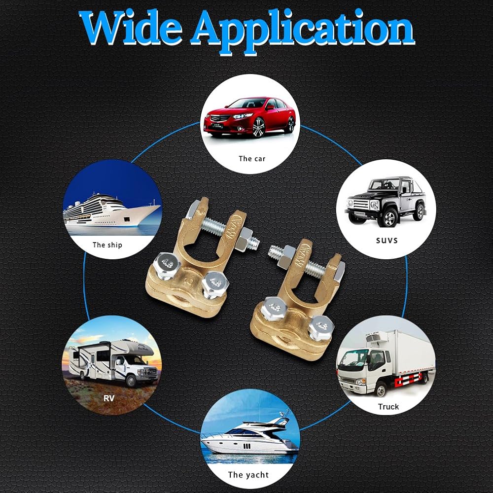 خيط موجود بالفعل على الطرف، لا يوجد صواميل لجعله أسرع وأسهل في التركيب، طرف البطارية العالمي يأتي مع محول إيجابي أو سلبي، تطبيق واسع في قارب السفينة الصغيرة، يخت RV، شاحنة التخييم، سيارة