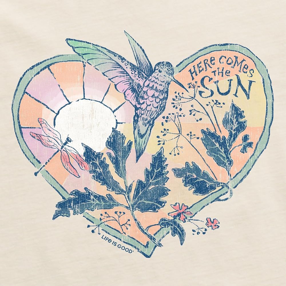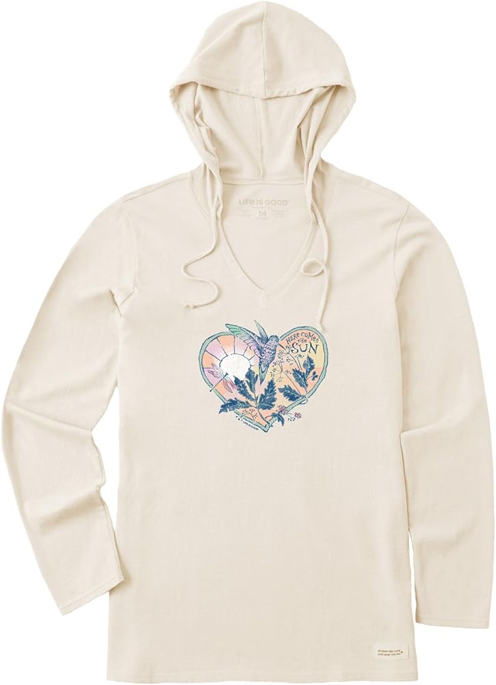 الحياة جيدة. تي شيرت بغطاء للرأس بأكمام طويلة على شكل قلب Dreamy Hummingbird للسيدات من Crusher-LITE (US، Alpha، X-Large، عادي، عادي، أبيض المعجون)