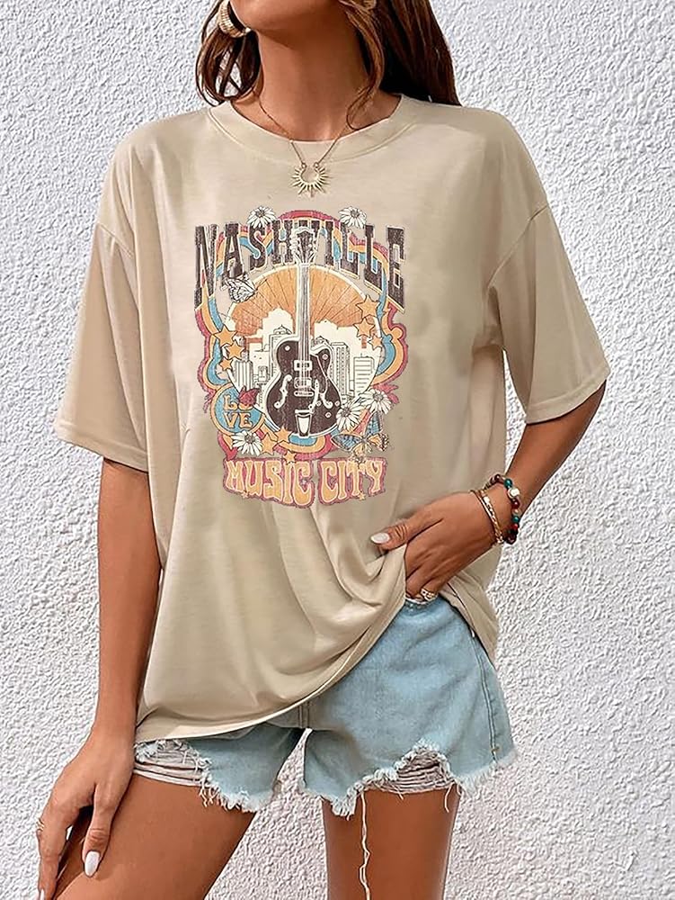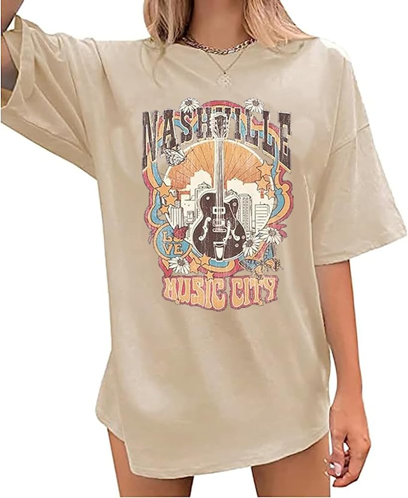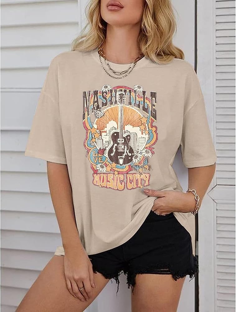 المزايا: تي شيرت Nashville Music City، قمصان كبيرة الحجم لموسيقى الريف للنساء، تي شيرتات برسومات أجنحة الجيتار العتيقة، قمصان موسيقى الروك، تي شيرت Nashville Vintage Style، قمصان قصيرة الأكمام للحفلات الموسيقية. أظهر حبك لمدينة الموسيقى وموسيقى الروك بأناقة!