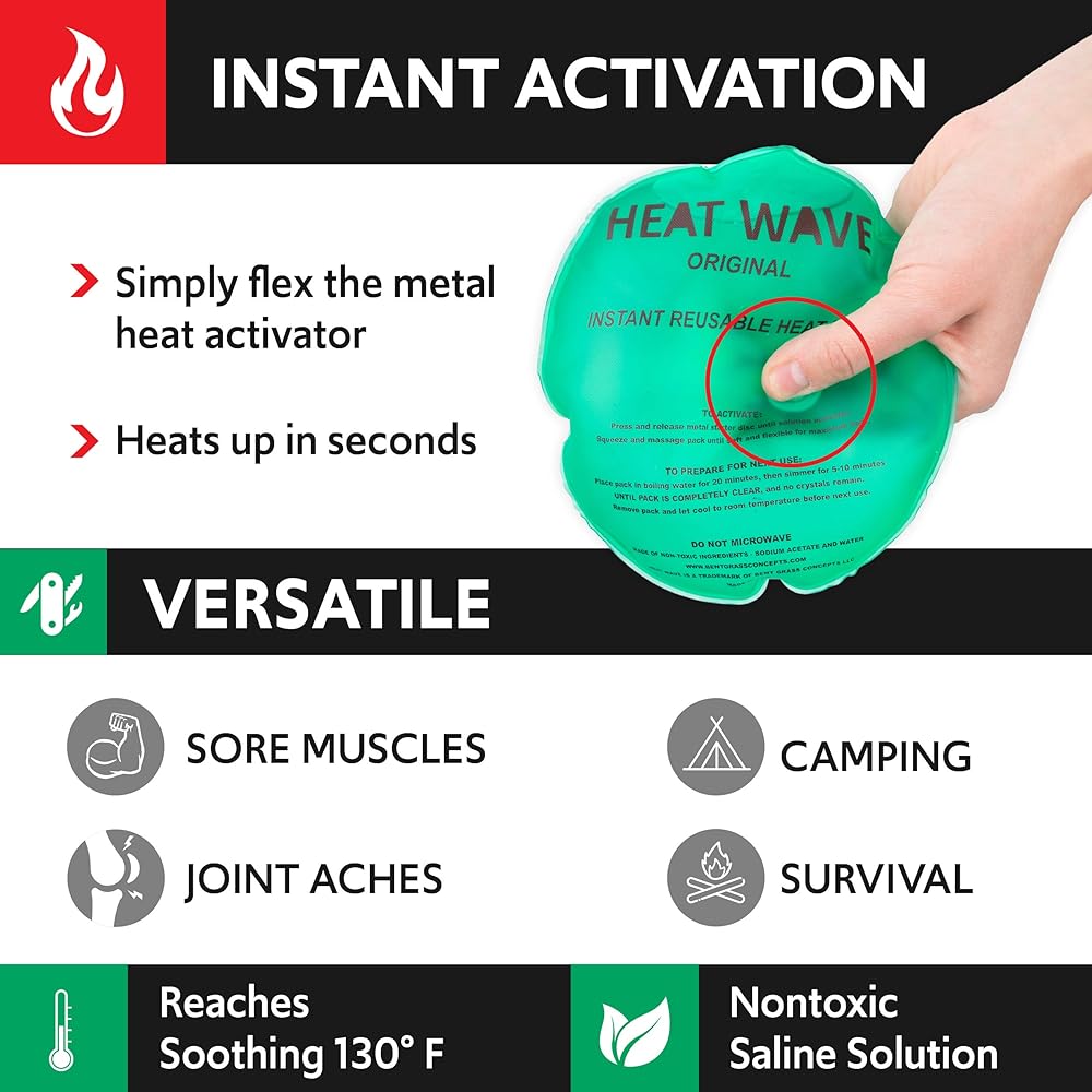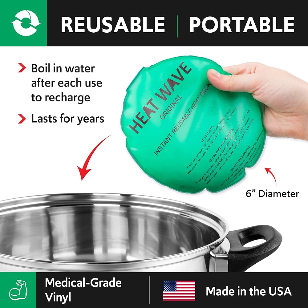 صنع في الولايات المتحدة الأمريكية: عبوات حرارية فورية قابلة لإعادة الاستخدام من HEAT WAVE - مستديرة كبيرة (قطر 6 بوصات)، حزمة حرارية قابلة لإعادة الاستخدام لآلام العضلات، وتخفيف الألم، انقر فوق الحرارة (عبوة مستديرة كبيرة 2)