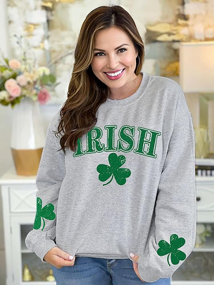 الميزات - سويت شيرت نسائي ليوم القديس باتريك يتميز بكاجوال ورقبة مستديرة وأكمام طويلة وتصميم لطيف. تيشيرت برسومات ذات مظهر كلاسيكي. أنماط محبوبة
