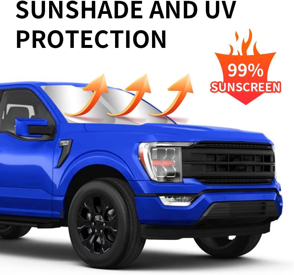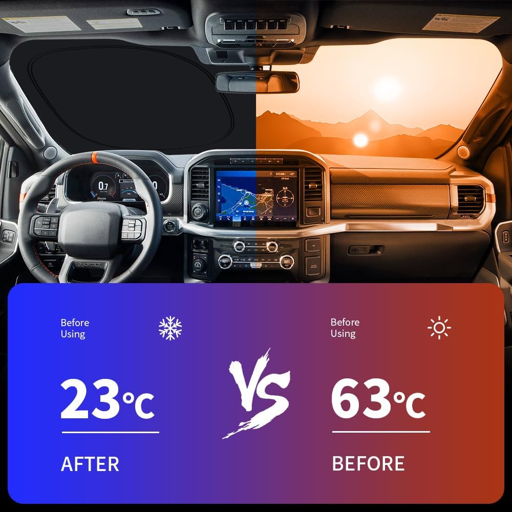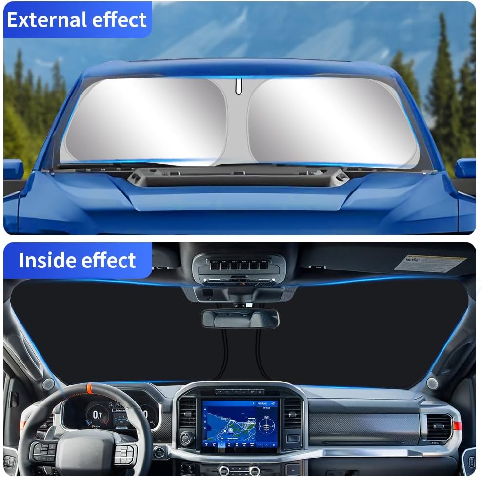 ✅【مواصفات السيارة】غطاء تظليل الزجاج الأمامي الخاص بنا مناسب خصيصًا لسيارة Ford F-150 2021-2025، F-150 Lightning 2022-2025. تصميم ملائم بدقة وحلقات فولاذية معززة تجعل ملاءمة دقيقة وآمنة للنافذة، لا حاجة لاستخدام أكواب الشفط لتثبيتها في مكانها، بدون فجوة، ملاءمة مثالية بنسبة 100%.
